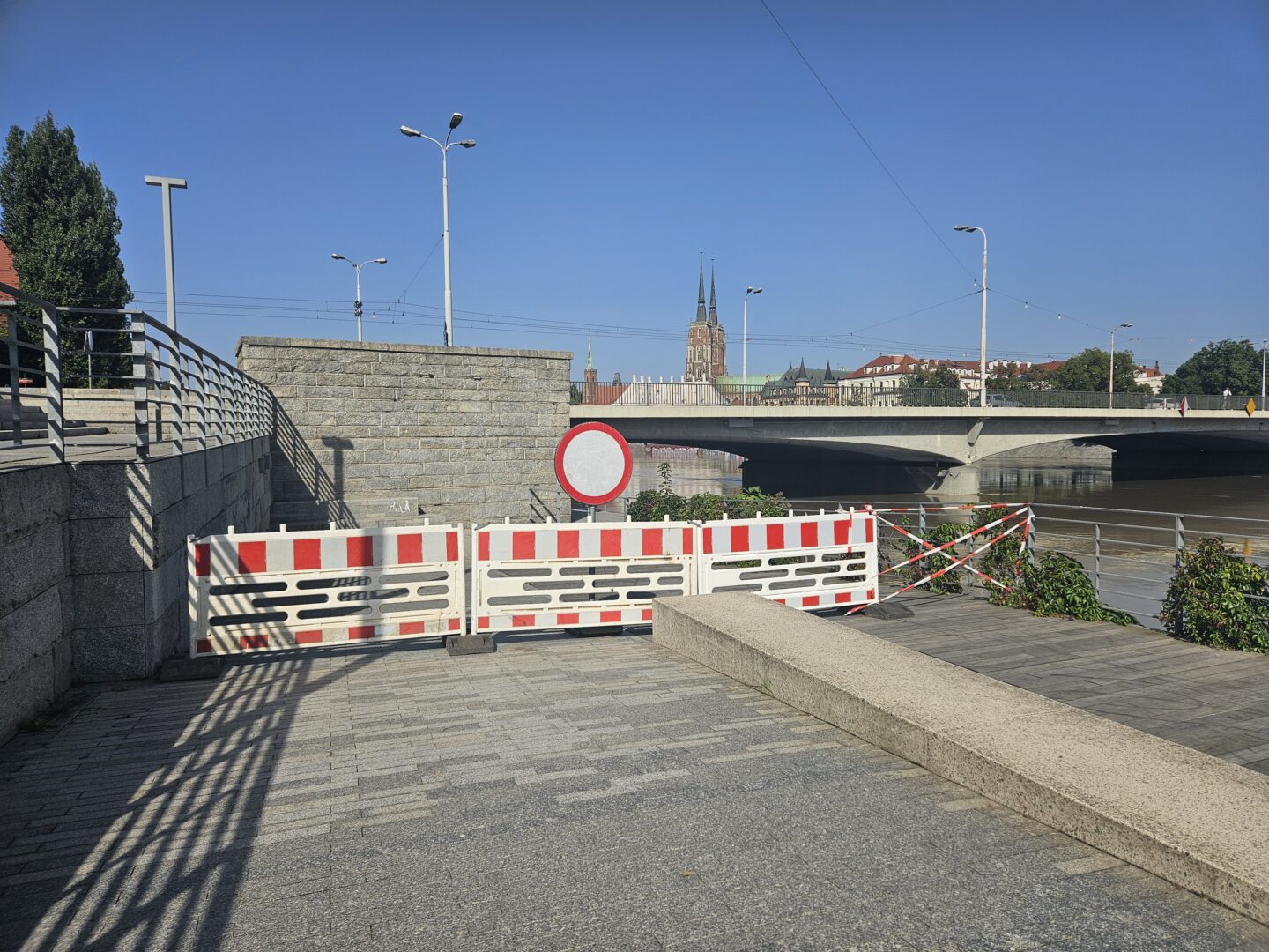 17 września około godz. 8.30 w związku z wysokim stanem Odry i zbliżającą się falą kulminacyjną, ZDiUM zamknął przejście dla pieszych pod mostem Pokoju.