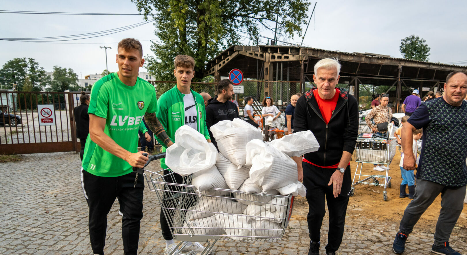 Spontaniczna potrzeba chwili sprawiła również, że do fizycznej pracy w napełnianiu worków z piaskiem ruszyli piłkarze Śląska wraz z trenerem Jackiem Magierą i prezesem Patrykiem Załęcznym. Panowie napełniali i przenosili worki z piaskiem w jednym z miejskich punktów ich wydawania dla mieszkańców.