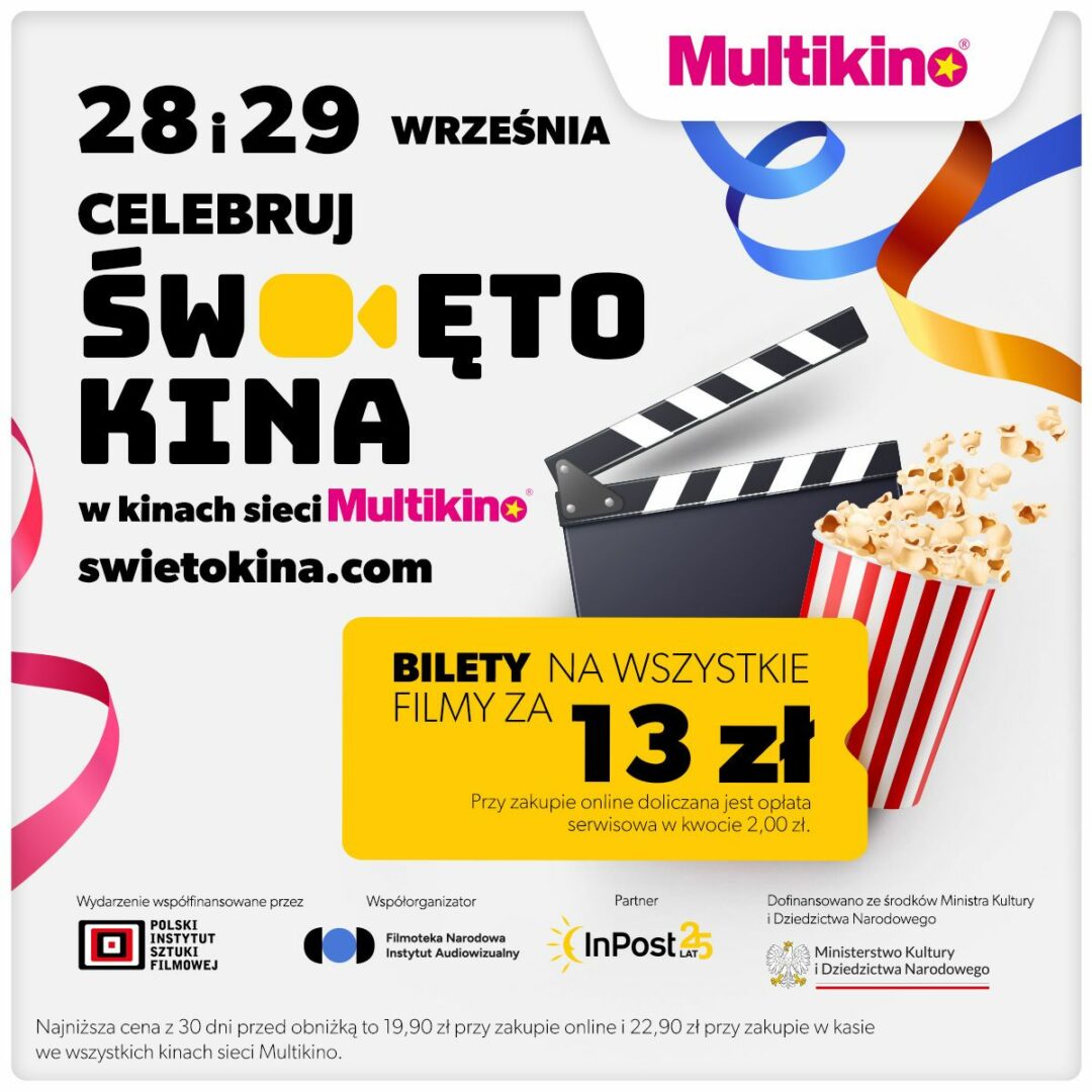 Już w ten weekend, 28 i 29 września odbędzie się Święto Kina! Multikino jak co roku dołączyło do tego wyczekiwanego filmowego wydarzenia. To wyjątkowa inicjatywa, która co roku przyciąga tysiące kinomanów, oferując możliwość obejrzenia najnowszych produkcji za jedyne 13 zł (przy zakupie biletów online, obowiązuje opłata internetowa)!