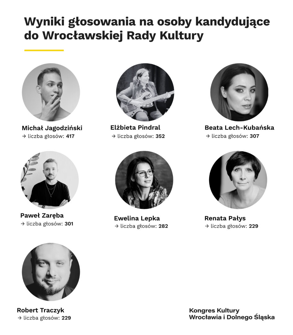26 października 2024 r., zakończyło się otwarte głosowanie do Wrocławskiej Rady Kultury oraz Dolnośląskiej Rady Kultury. Ciała te mają charakter doradczy i będą wspierać odpowiednio prezydenta Wrocławia oraz marszałka województwa dolnośląskiego w zakresie polityki kulturalnej przez najbliższe trzy lata. Oddano łącznie 6623 głosy!