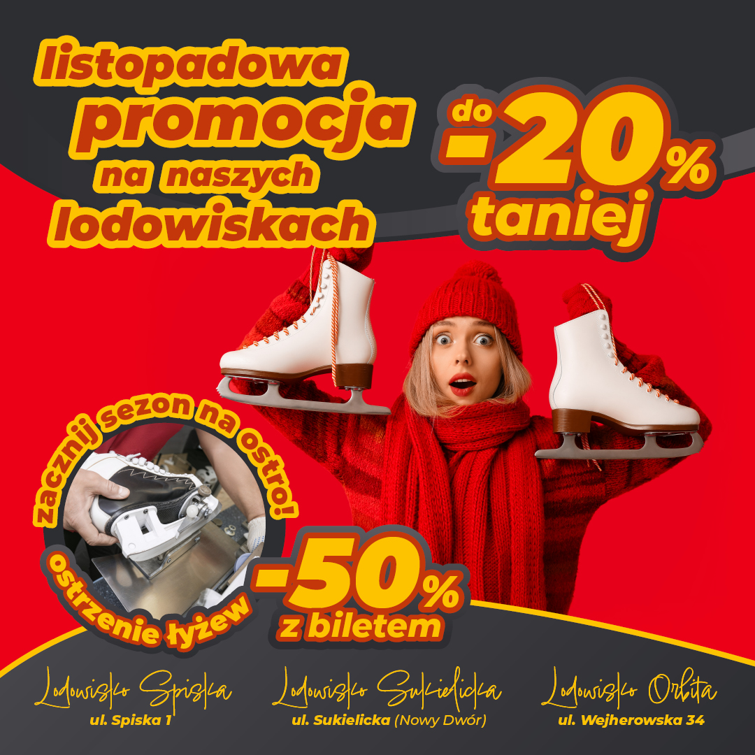 – Aby jeszcze bardziej zachęcić i wypromować wślizgnięcie się w dobrych nastrojach w nowy sezon i jednocześnie zaprosić wszystkich miłośników łyżwiarstwa, ale również tych, którzy dopiero planują rozpocząć swoją przygodę na lodzie, przygotowaliśmy specjalną listopadową promocję. Z doświadczenia wiemy, że wielu wrocławian czeka już na otwarcie lodowisk, dlatego specjalnie dla nich obniżyliśmy w listopadzie ceny biletów wstępu nawet o 20% – mówi Marek Łapiński, prezes WCT Spartan sp. z. o.o. zarządzającego wrocławskimi lodowiskami.