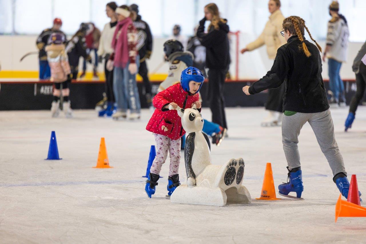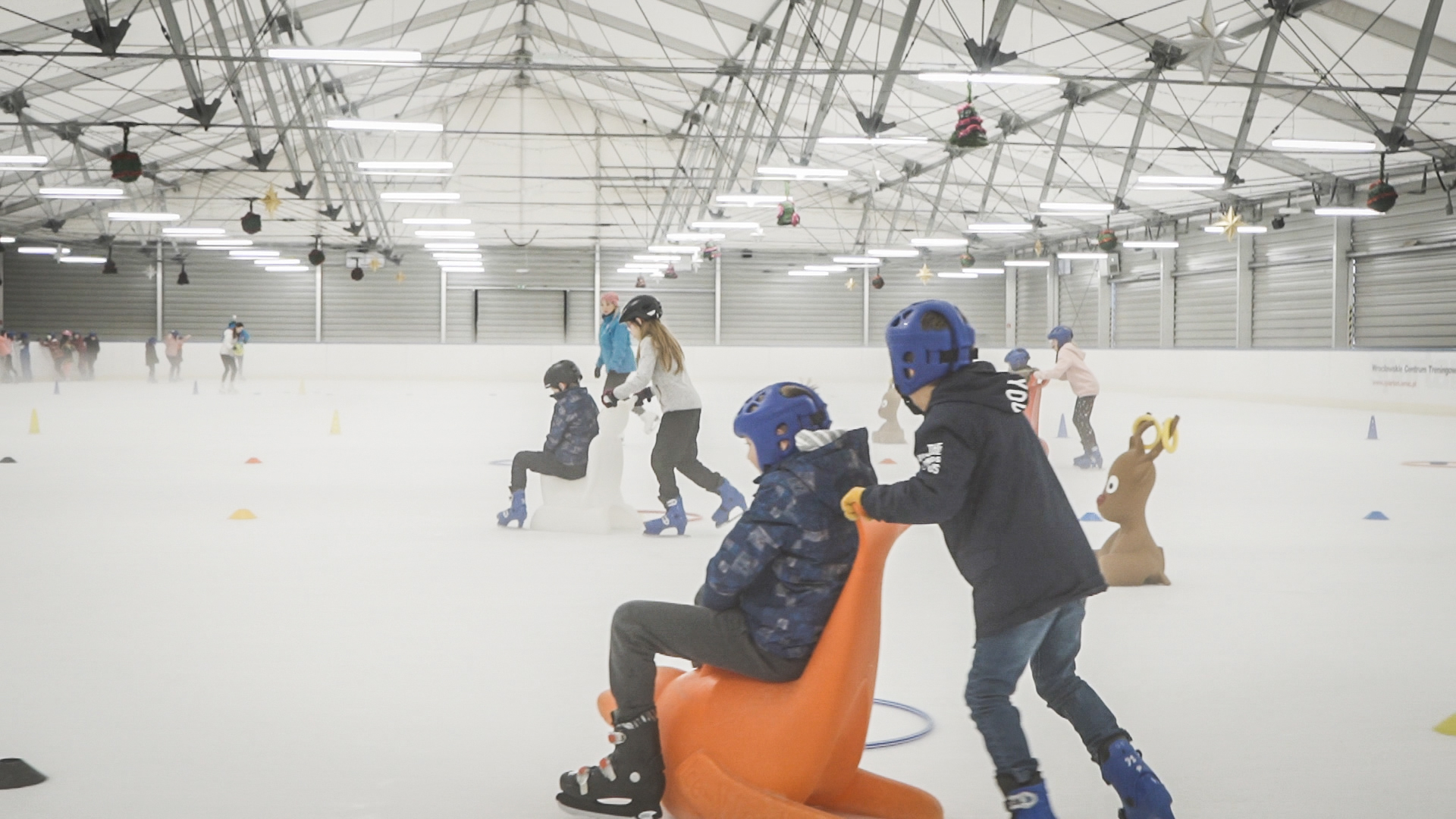 W wypożyczalniach znajdziemy także kaski, a na najmłodszych czekają pomocne zwierzaki (foki, pingwiny, misie, renifery) do nauki jazdy na łyżwach.