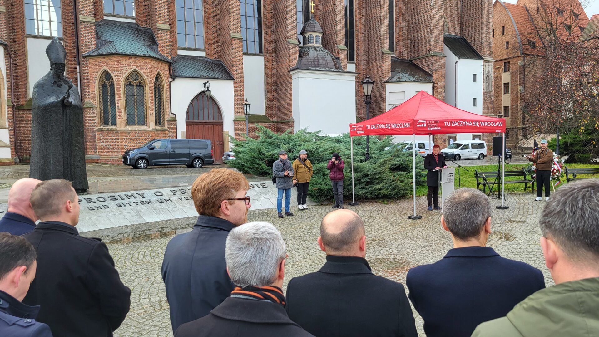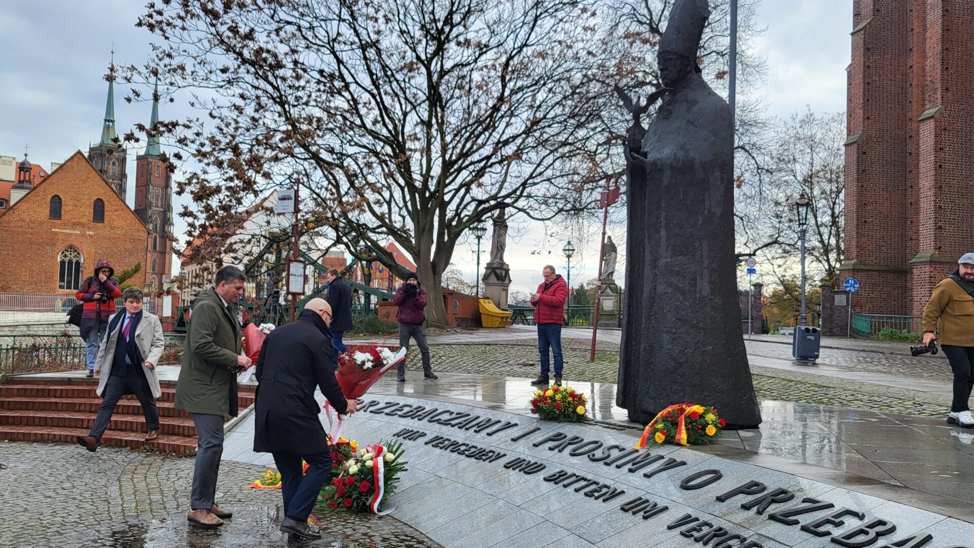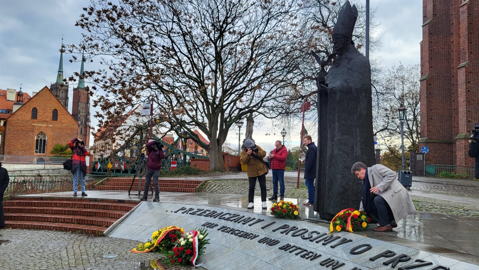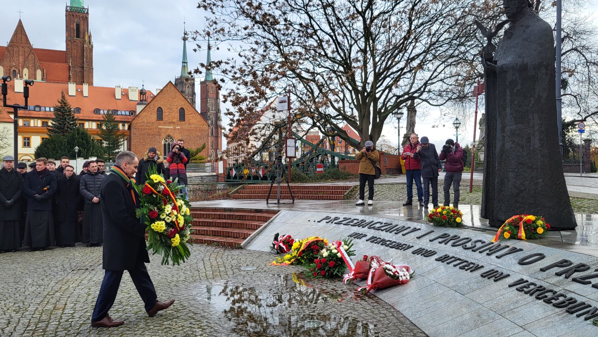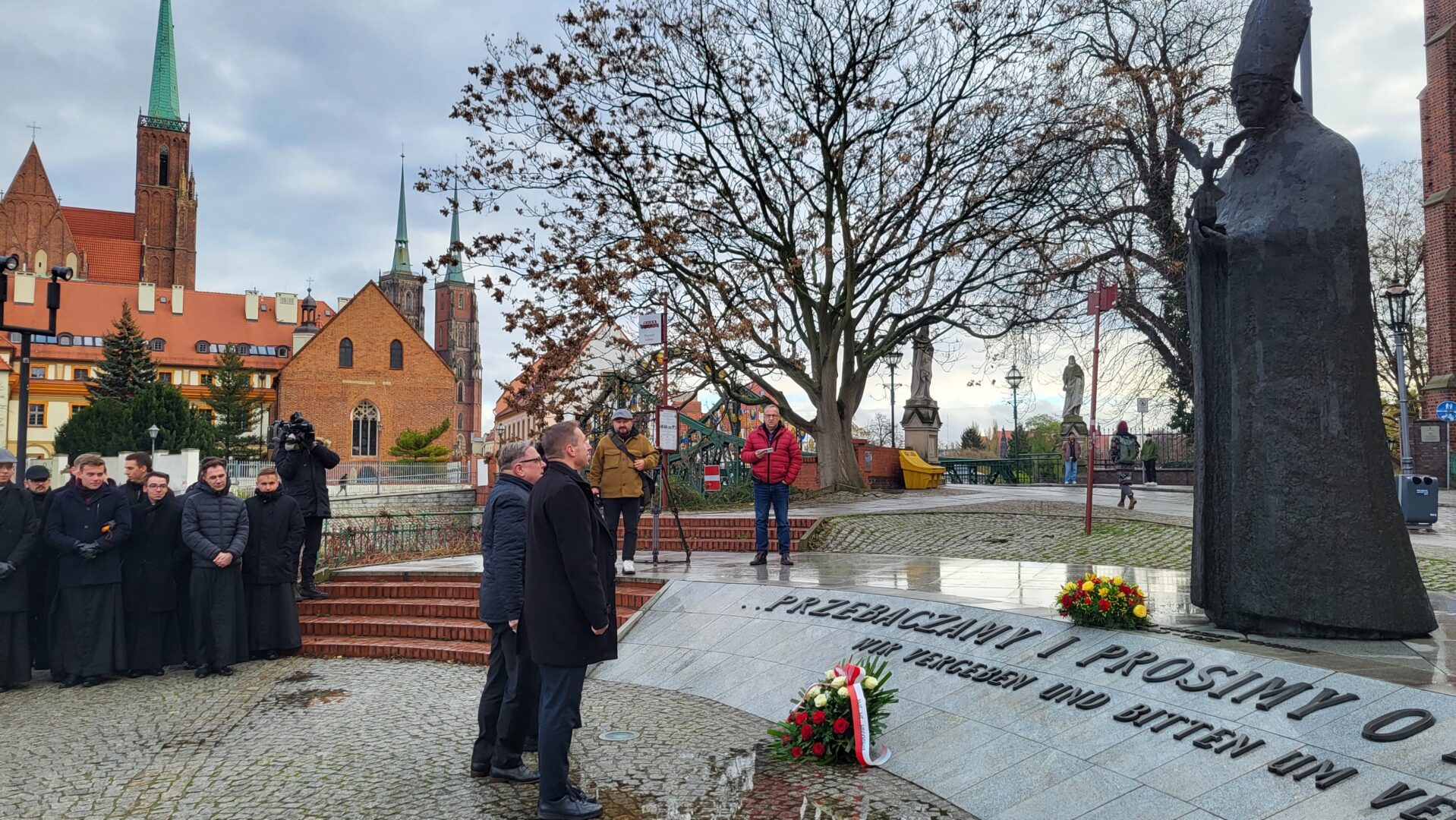 W południe na wyspie Piasek przedstawiciele Kościoła, wrocławskiego i dolnośląskiego samorządu, konsul RFN Martin Kremer oraz mieszkańcy złożyli kwiaty przed pomnikiem kard. Bolesława Kominka, autora słów „przebaczamy i prosimy o przebaczenie”. Słowa te trwale zmieniły relacje polsko-niemieckie. Zostały przekazane przez biskupów polskich biskupom niemieckim 18 listopada 1965 r. w liście zapraszającym do udziału w uroczystych obchodach tysiąclecia chrztu Polski. W przyszłym roku planowane są jubileuszowe obchody upamiętniające 60. rocznicę wydarzenia.