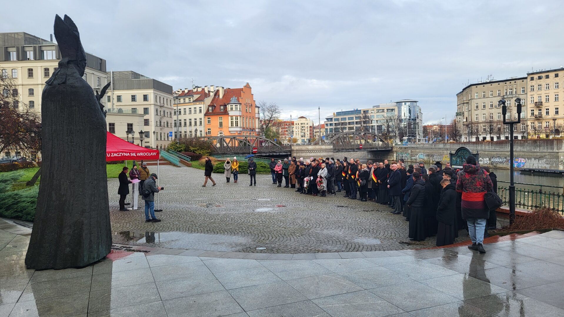 W południe na wyspie Piasek przedstawiciele Kościoła, wrocławskiego i dolnośląskiego samorządu, konsul RFN Martin Kremer oraz mieszkańcy złożyli kwiaty przed pomnikiem kard. Bolesława Kominka, autora słów „przebaczamy i prosimy o przebaczenie”. Słowa te trwale zmieniły relacje polsko-niemieckie. Zostały przekazane przez biskupów polskich biskupom niemieckim 18 listopada 1965 r. w liście zapraszającym do udziału w uroczystych obchodach tysiąclecia chrztu Polski. W przyszłym roku planowane są jubileuszowe obchody upamiętniające 60. rocznicę wydarzenia.