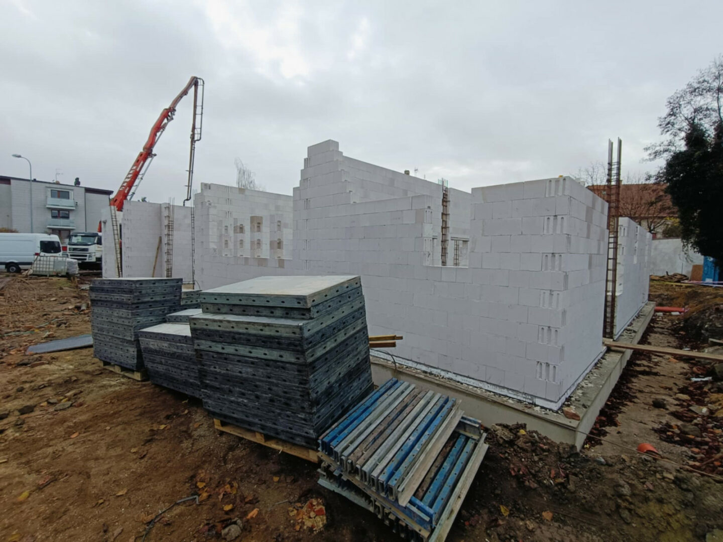 Po zakończeniu robót fundamentowych i wykonaniu żelbetowej płyty, obecnie trwają roboty budowlane związane ze wznoszeniem murów, betonowaniem żelbetowych trzpieni oraz zbrojeniem podciągów. Do końca listopada zostanie ułożony prefabrykowany żelbetowy strop. Równolegle prowadzone są prace izolacyjne. Roboty przebiegają planowo, zgodnie z harmonogramem.