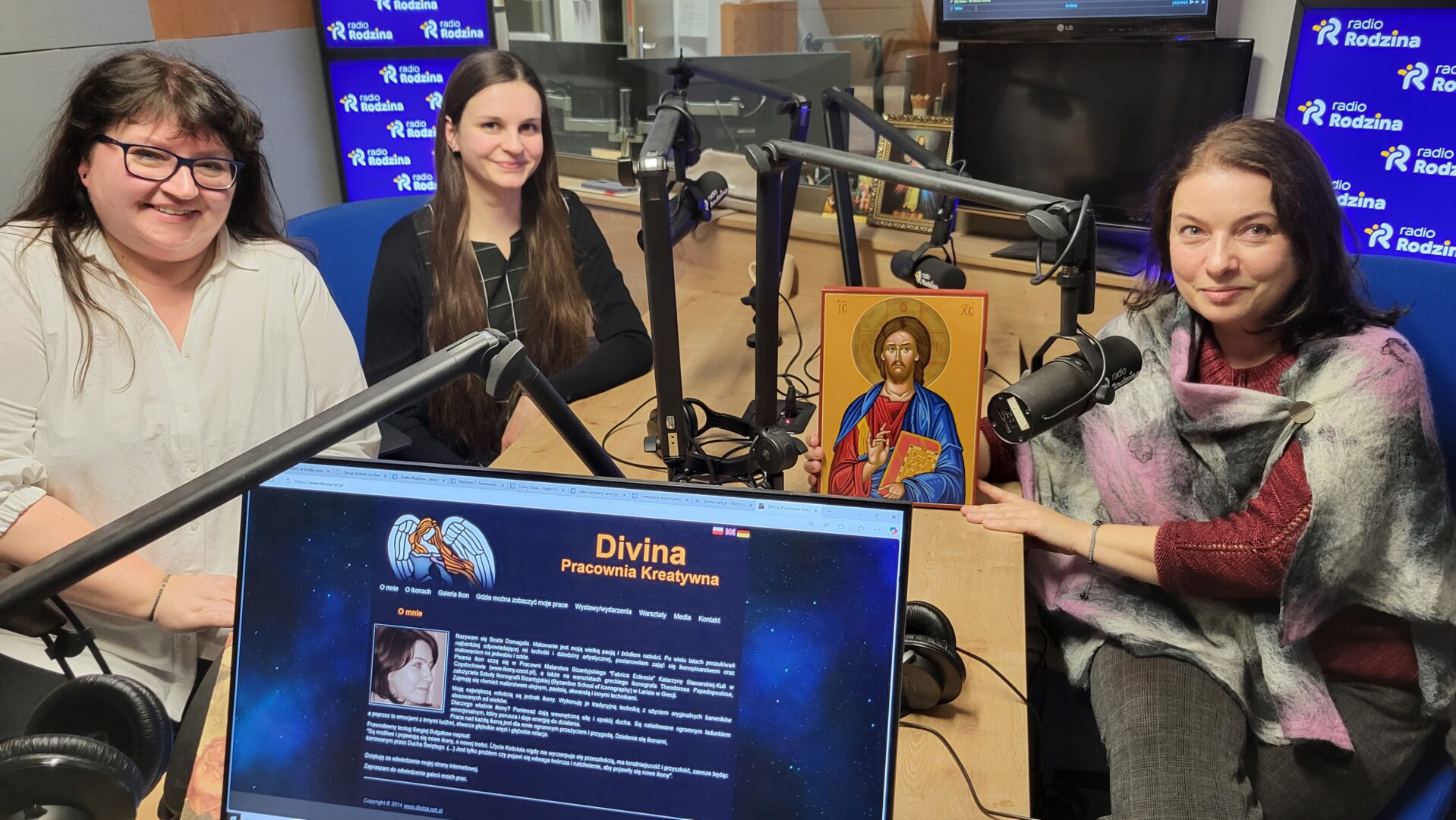 Rozmówczynie podzieliły się swoimi doświadczeniami z wieloletnich warsztatów pisania ikon. Opowiadały o różnicach między pisaniem a malowaniem ikon, procesie ich tworzenia oraz duchowych korzyściach płynących z tej formy sztuki. Przybliżyły także informacje o powstającej Szkole Pisania Ikon.