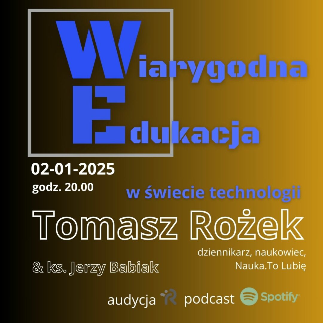 Pierwsza w nowym roku audycja „Wiarygodna Edukacja” już 2 stycznia o godz. 20.00. Ks. Jerzy Babiak zaprasza do rozmowy z Tomaszem Rożkiem fizykiem, doktorem nauk fizycznych, dziennikarzem naukowym oraz laureatem licznych nagród dziennikarskich. Tomasz Rożek to także założyciel Fundacji Nauka. To Lubię, której misją jest popularyzacja nauki i nowych technologii.