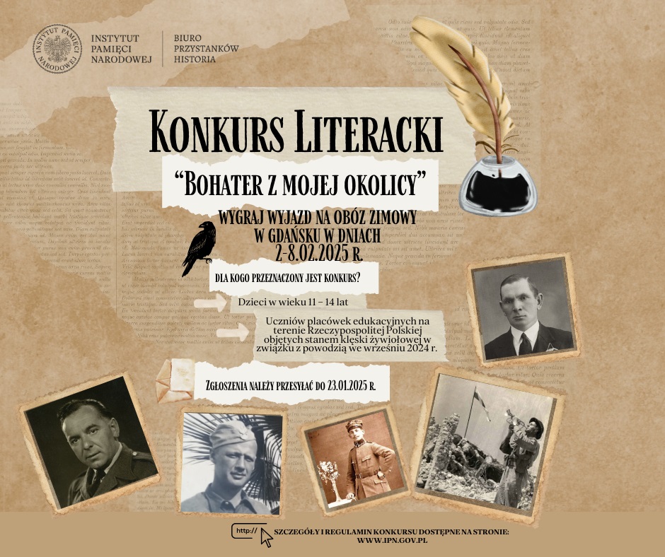 Biuro Przystanków Historia IPN ma ogromną przyjemność zaprosić dzieci i młodzież w wieku 10–14 lat, zamieszkujące tereny Rzeczpospolitej Polskiej, objęte stanem klęski żywiołowej z września 2024 roku (popowodziowe), do udziału w konkursie literackim „Bohater z mojej okolicy”.