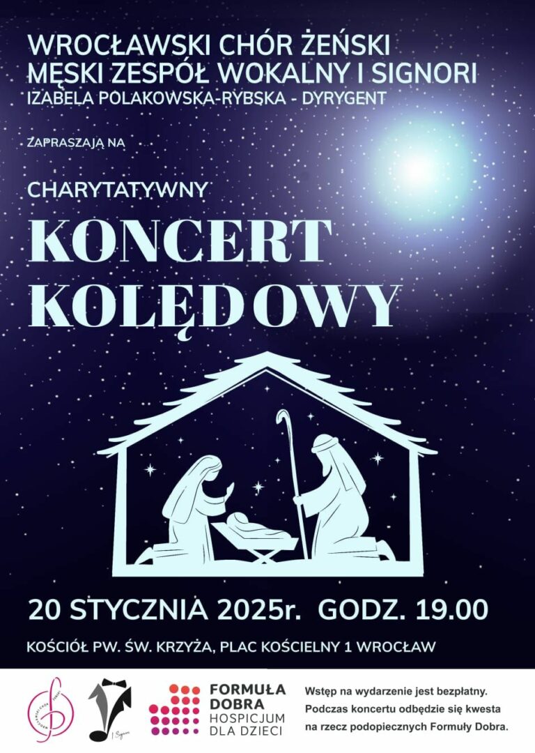 Serdecznie zapraszamy na wyjątkowy koncert kolęd, który odbędzie się 20 stycznia o godzinie 19:00 w kościele pw. Św. Krzyża przy Placu Kościelnym 1 we Wrocławiu