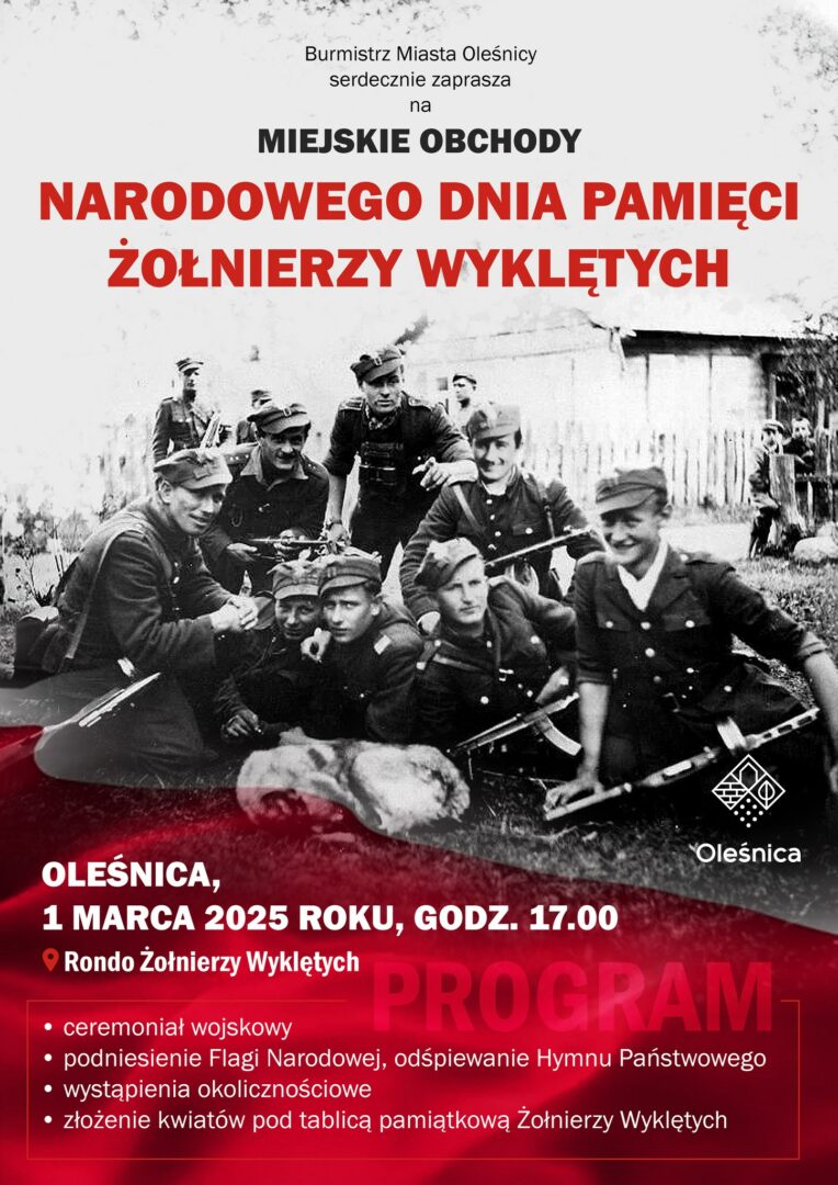 1 marca mieszkańcy Oleśnicy oddadzą hołd Żołnierzom Wyklętym – bohaterom, którzy swoją niezłomną postawą i przywiązaniem do tradycji niepodległościowych zapisali się na kartach historii Polski.
