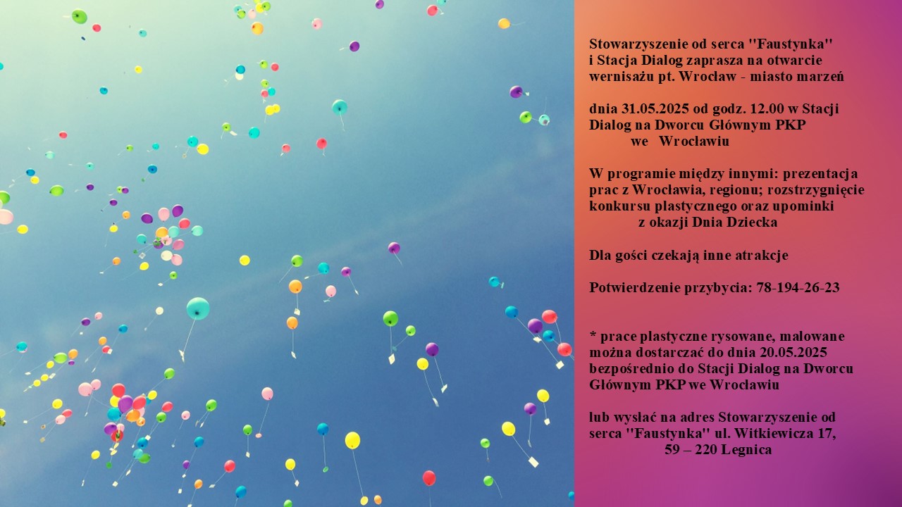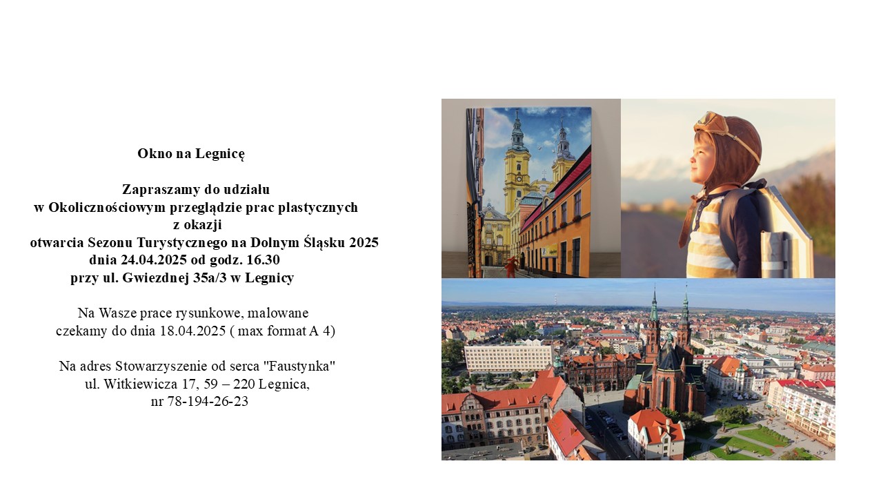 Dzień później, 27 kwietnia od godz. 12.00 do 17.00 Stowarzyszenie od serca „Faustynka” zaprezentuje stoisko na legnickim Rynku w ramach otwarcia Sezonu Turystycznego Dolnego Śląska 2025. Na najmłodszych czeka moc atrakcji. Warto też zaprosić słuchaczy 24 maja od godz. 10.00 na Forum Rodzin i dzieci przy ul. Nowodworskiej 6 A, które będzie połączone z prezentacją prac plastycznych pt. „Rodzina to jest siła”.
