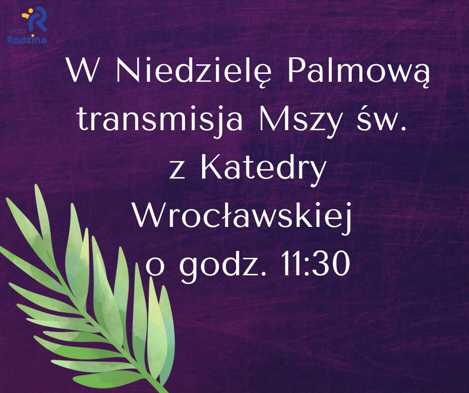 W Niedzielę Palmową (13.04) NIE będzie transmisji Mszy św. o godz. 10:00. Transmitować będziemy uroczystą Mszę o godz. 11:30, której przewodniczyć będzie Abp Józef Kupny.