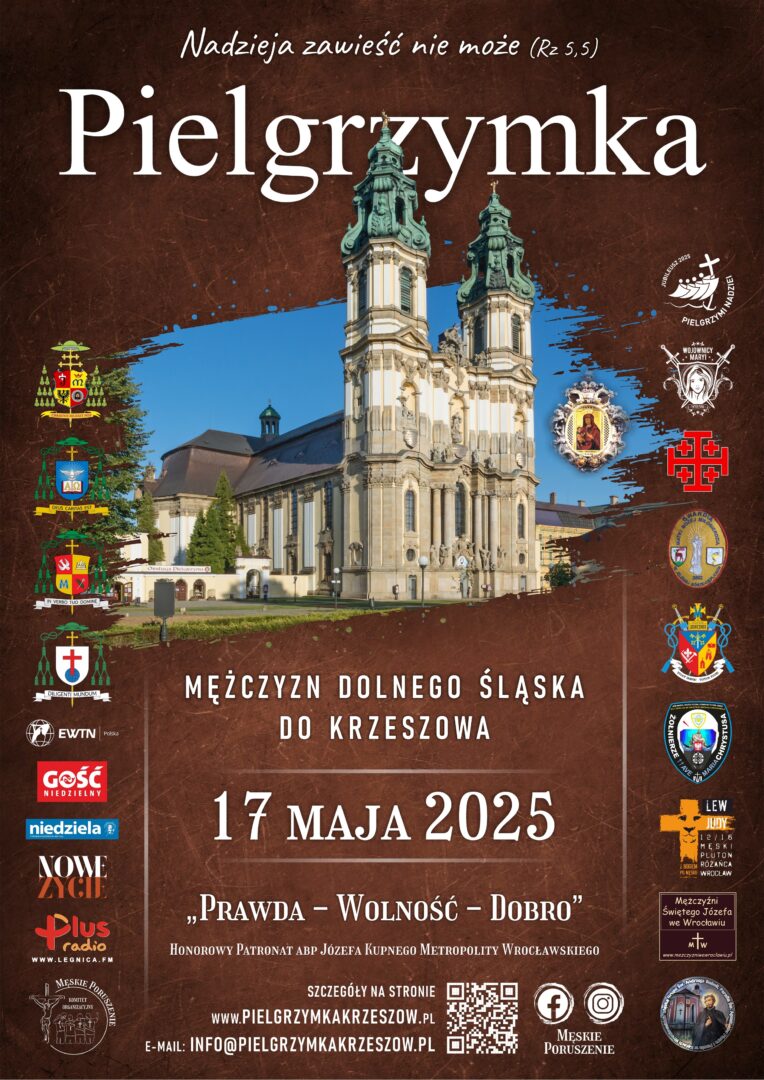 Bądźmy razem 17 maja 2025 na II Pielgrzymce Mężczyzn Dolnego Śląska w Krzeszowie jako jedno, wielkie, wspólne męskie braterstwo. Zapisujcie się i zapraszajcie na tę wyjątkową inicjatywę budowania tożsamości mężczyzn na Dolnym Śląsku!
