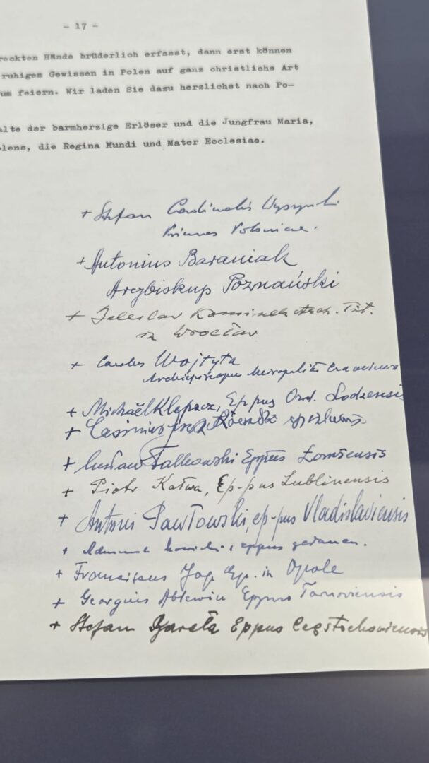 W gmachu Senatu Rzeczypospolitej Polskiej w Warszawie otwarto wystawę „Pojednanie dla Europy”. Po raz pierwszy publicznie zaprezentowano razem trzy bezcenne dokumenty: rękopis listu biskupów polskich do biskupów niemieckich z 1965 roku, jego ostateczną wersję oraz odpowiedź niemieckich hierarchów. Wystawa, wcześniej pokazywana w Rzymie, ukazuje historyczny gest polskich duchownych, którzy – mimo wojennych ran – odważyli się wypowiedzieć słowa: „przebaczamy i prosimy o przebaczenie”.