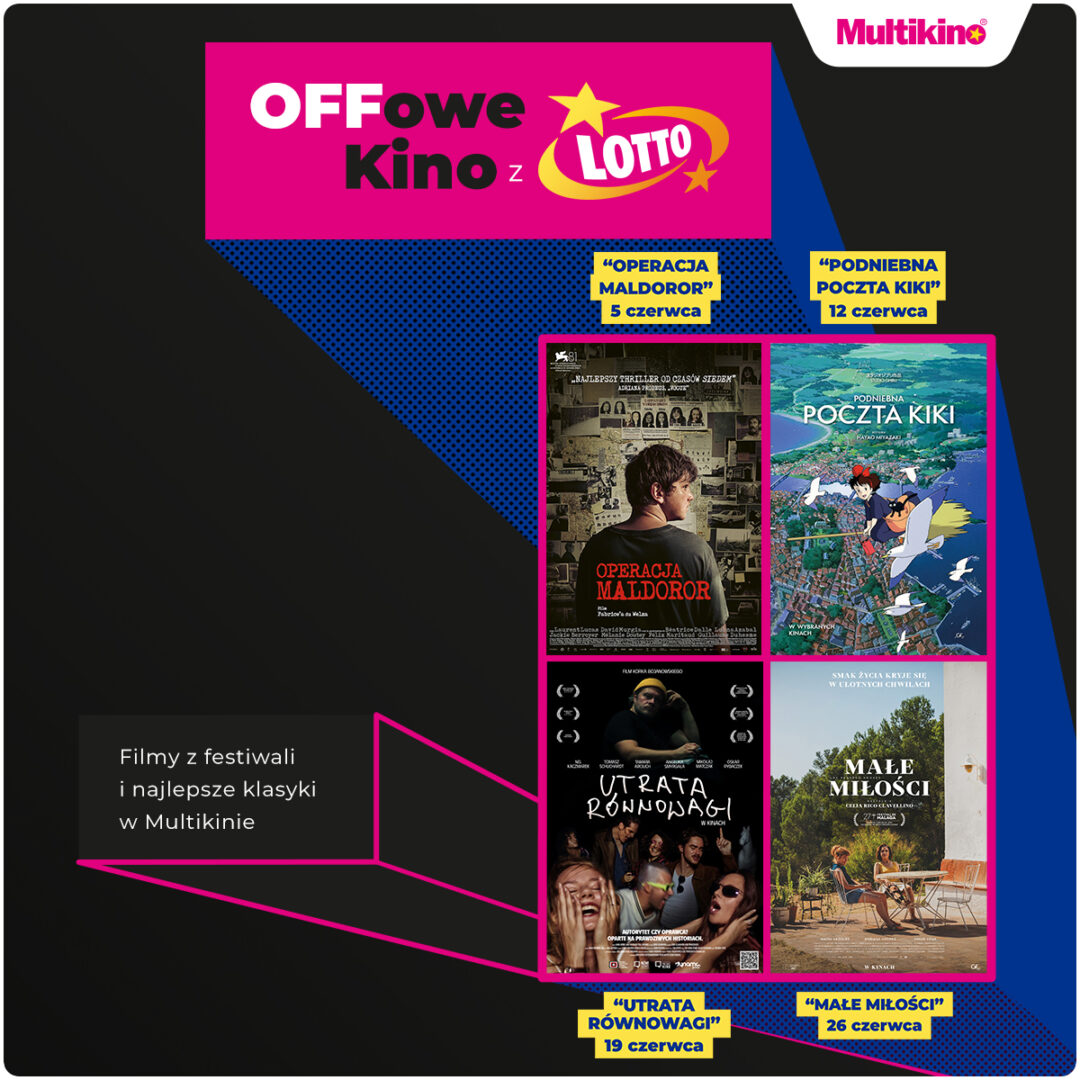 Projekt „OFFowe Kino z Lotto” w czerwcu rozszerzy regularny repertuar o filmy festiwalowe i artystyczne produkcje: 5 czerwca „Operacja Maldoror”, 12 czerwca „Podniebna poczta Kiki”, 19 czerwca „Utrata równowagi”, a 26 czerwca „Małe miłości”.