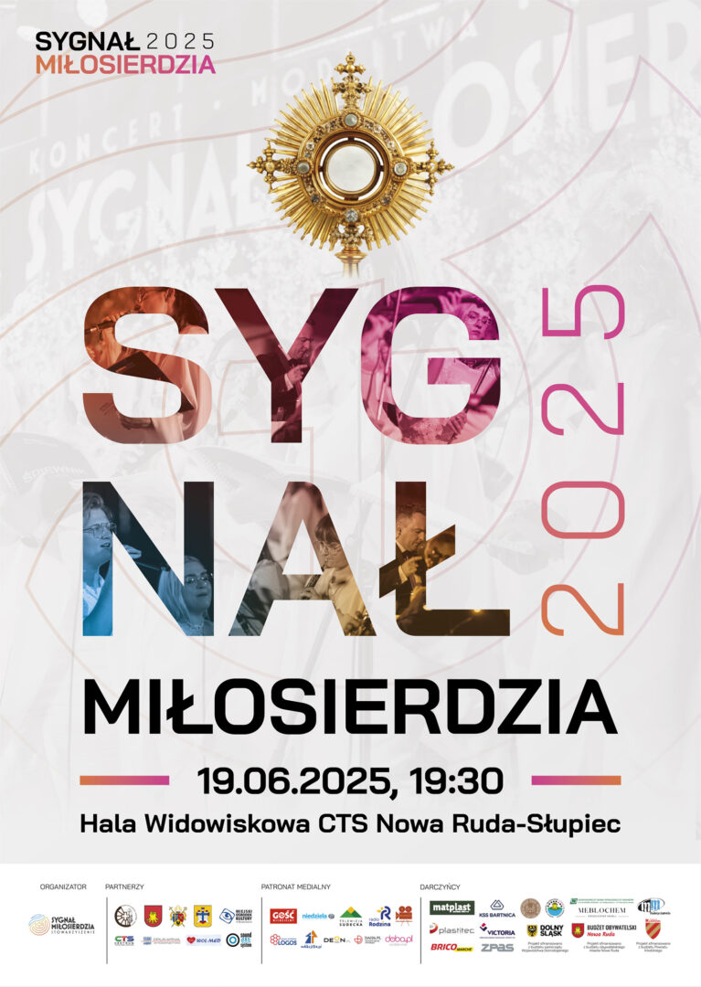 Już 19 czerwca 2025 o godz. 19:30 Hala Widowiskowa CTS w Nowej Rudzie-Słupcu znów zabrzmi dźwiękiem radości, nadziei i uwielbienia! Przed nami VIII edycja Koncertu Uwielbienia Sygnał Miłosierdzia – wydarzenia, które łączy ludzi, pokolenia i serca, by wspólnie spotkać się z Bogiem poprzez muzykę worship.