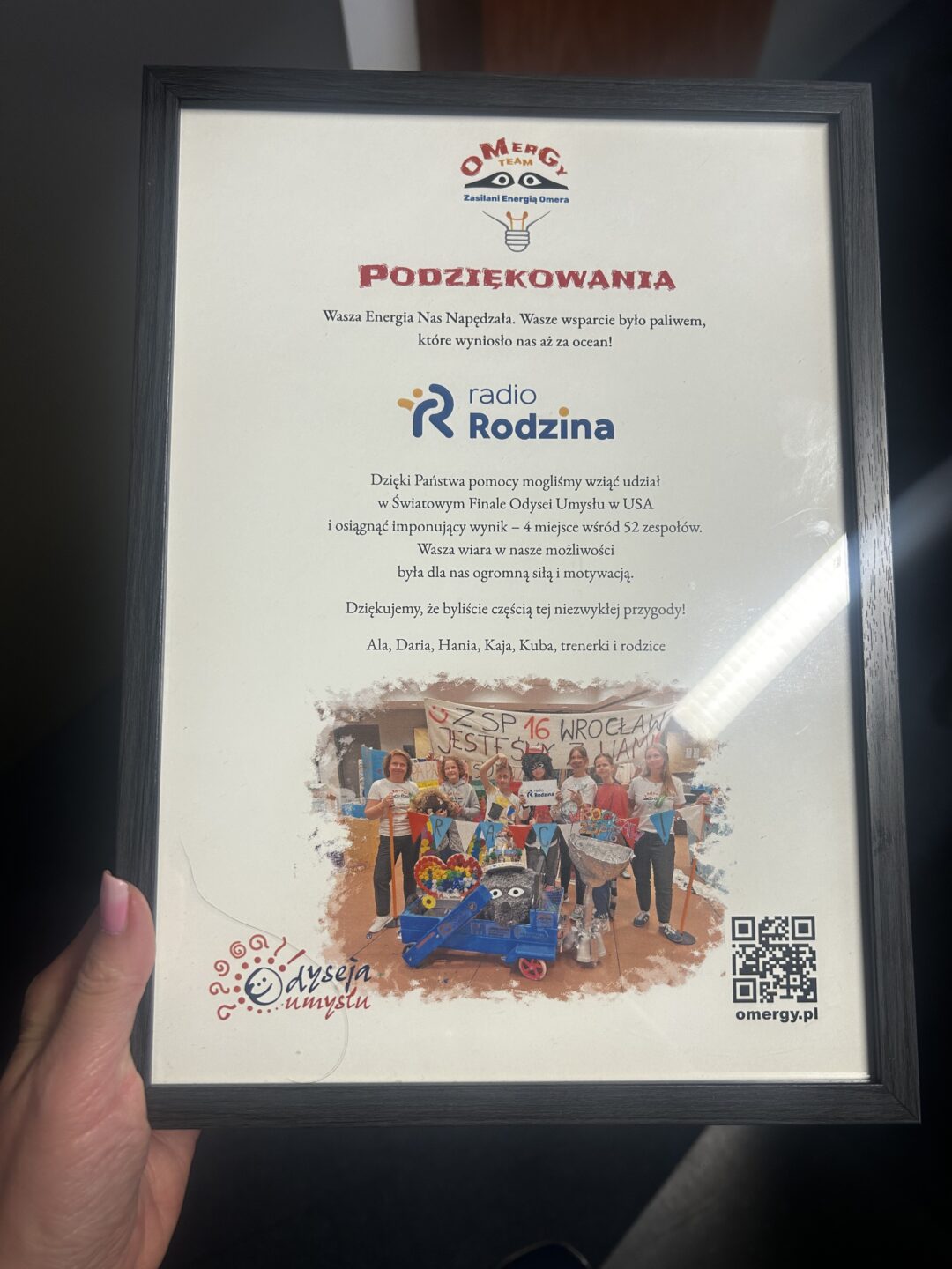 Ala, Hania, Kaja zZespołu Szkolno-Przedszkolnego nr 16 z OMerGy Team opowiadają o swoim wyjeździe do Stanów Zjednoczonych. Zajęli 4 na 52 miejsce w międzynarodowym finale „Odysei Umysłu” w USA.
