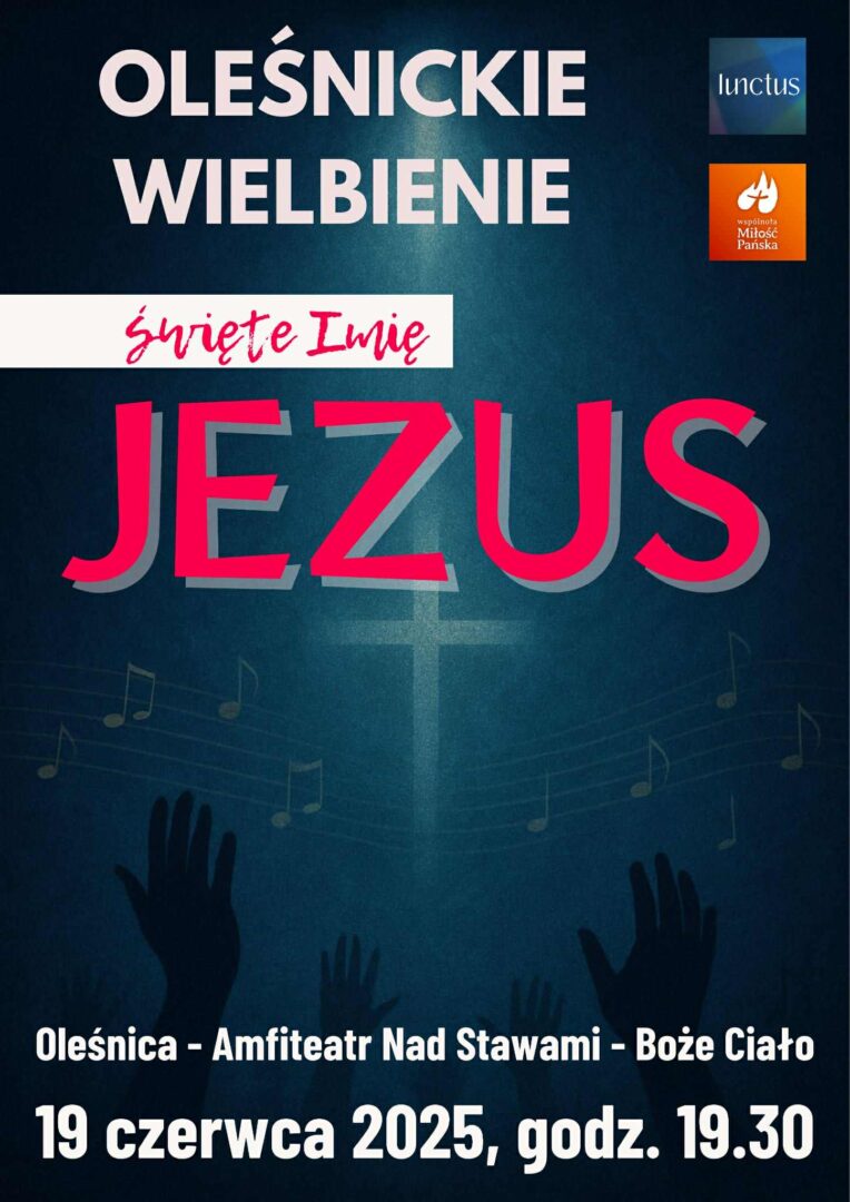 Koncert „Święte Imię Jezus” odbędzie się w Boże Ciało o godz. 19:30, w amfiteatrze Parku nad Stawami w Oleśnicy. Organizatorzy zapraszają wszystkich – mieszkańców Oleśnicy i okolic – do wspólnego świętowania, uwielbienia i otwarcia się na łaskę.