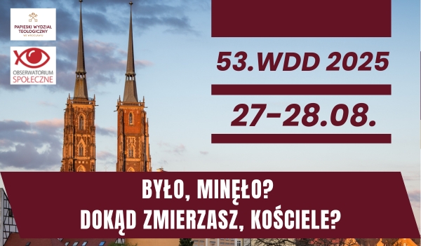 Papieski Wydział Teologiczny we Wrocławiu we współpracy z Fundacją Obserwatorium Społeczne zapraszają na 53. WROCŁAWSKIE DNI DUSZPASTERSKIE, pt.: Było, minęło? Dokąd zmierzasz, Kościele?Wydarzenie odbędzie się w dniach 27-28.08.2025 r.