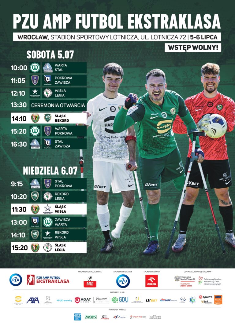 Turniej zaplanowano na dwa dni. W tym czasie aż trzykrotnie będzie można zobaczyć na boisku ekipę Śląska Wrocław. Pierwsza rywalizacja z udziałem gospodarzy rozpocznie się w sobotę o 14:10, a przeciwnikiem Trójkolorowych będzie Rekord Bielsko-Biała. Z kolei w niedzielę WKS czekają dwa prestiżowe i niezwykle istotne starcia: o 11:30 zagrają z Wisłą Kraków, a o 15:20, na finał całych zmagań, z Legią Warszawa. Na jakim etapie dokładnie są rozgrywki PZU Amp Futbol Ekstraklasy? Tłumaczy Mariusz Bogucki.