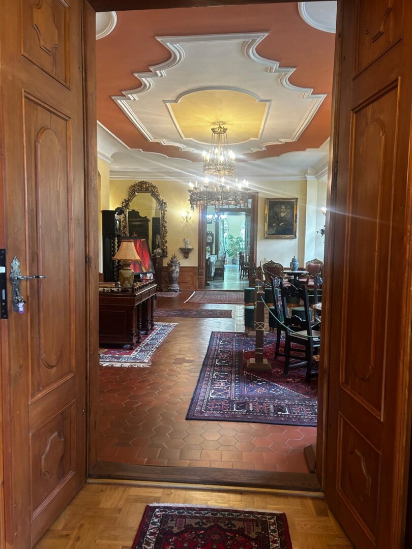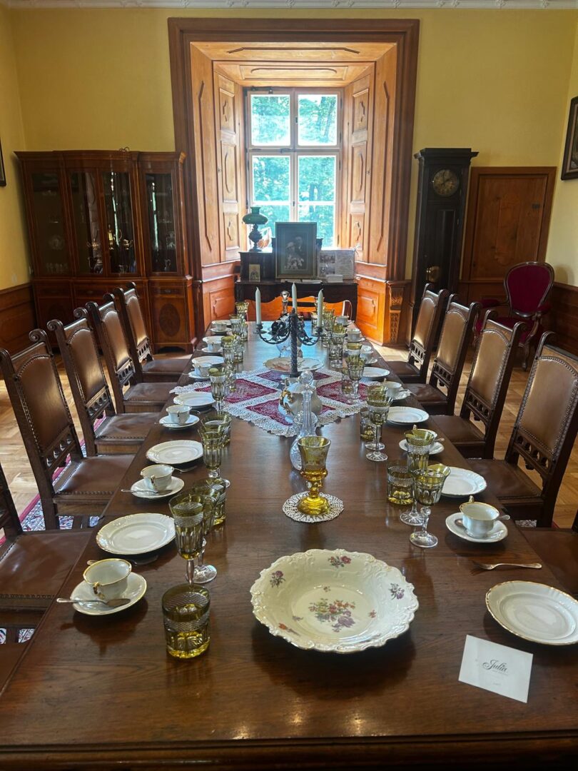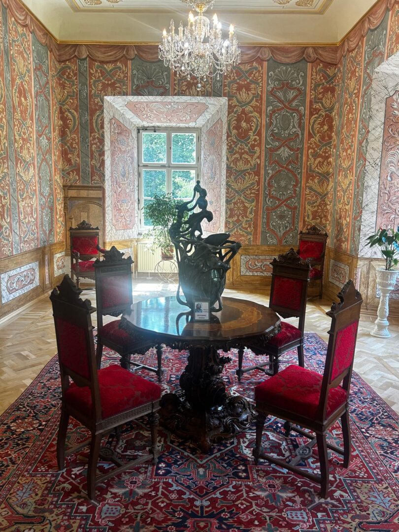 Po Pałacu w Ciechanowicach oprowadził nas Paweł Truszczyński – zastępca Wójta Gminy Marciszów. Obiekt został odrestaurowany i otwarty dla turystów. Jego wnętrze kryją cenne renesansowe freski, których artystyczna wartość porównywalna jest z freskami na Wawelu. Pałac otacza park, który zachwyca różnorodnością stylów (angielski, francuski i włoski).