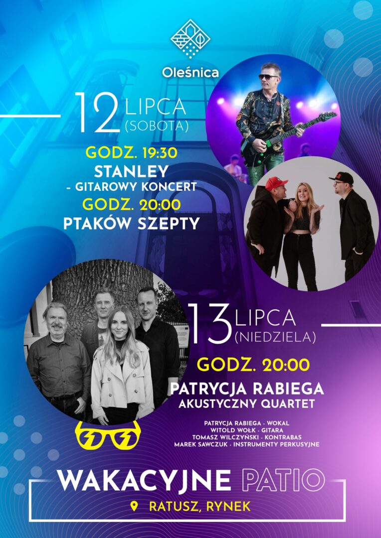 Lato w Oleśnicy zapowiada się muzycznie i klimatycznie. Od początku lipca do końca sierpnia mieszkańcy i turyści będą mogli uczestniczyć w cyklu wydarzeń kulturalnych „Wakacyjne Patio 2025”, odbywających się na Rynku przy Ratuszu. Wstęp wolny.