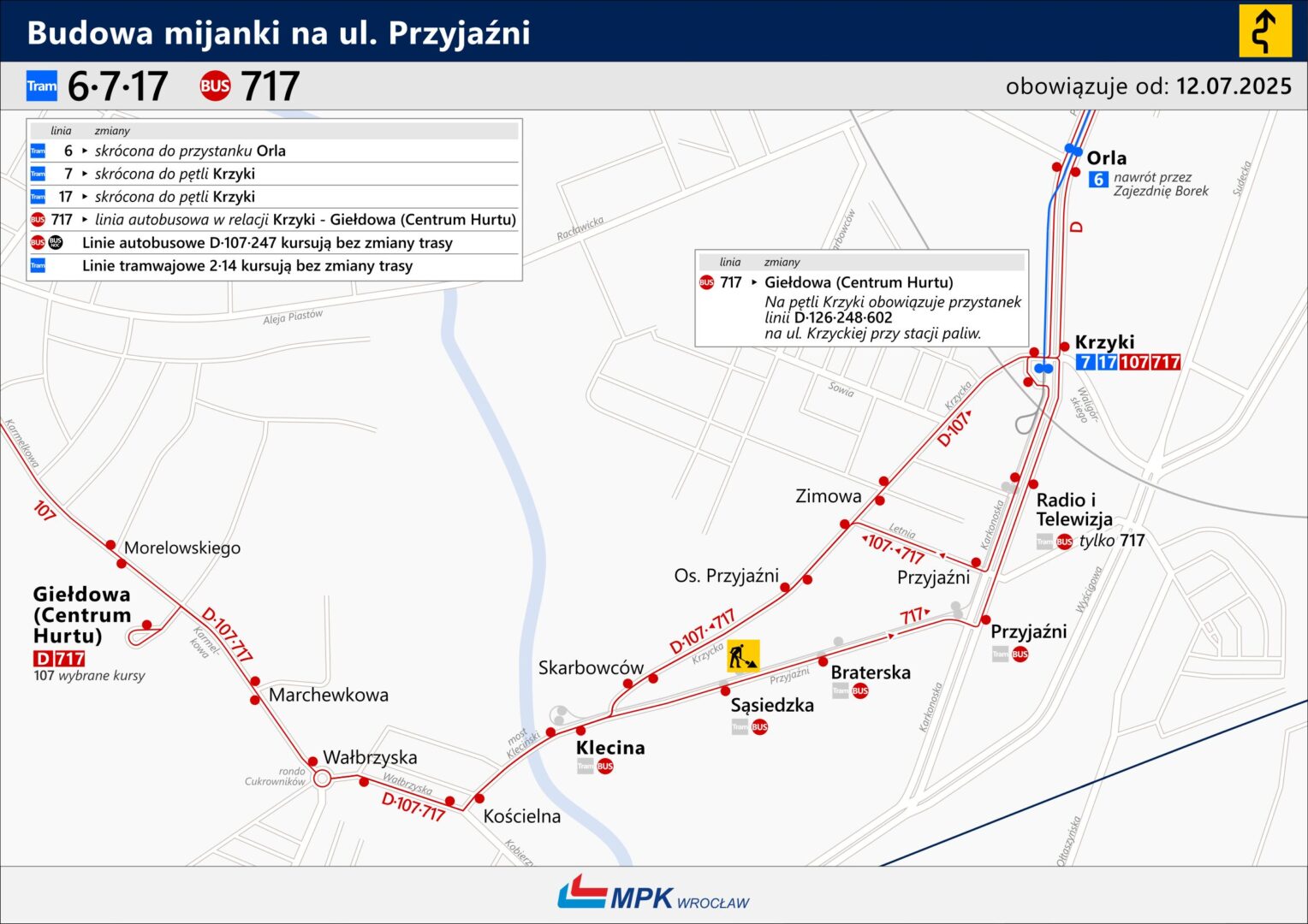 Zostanie uruchomiony autobus ,,za tramwaj” linii 717 Krzyki-Giełdowa (Centrum Hurtu).