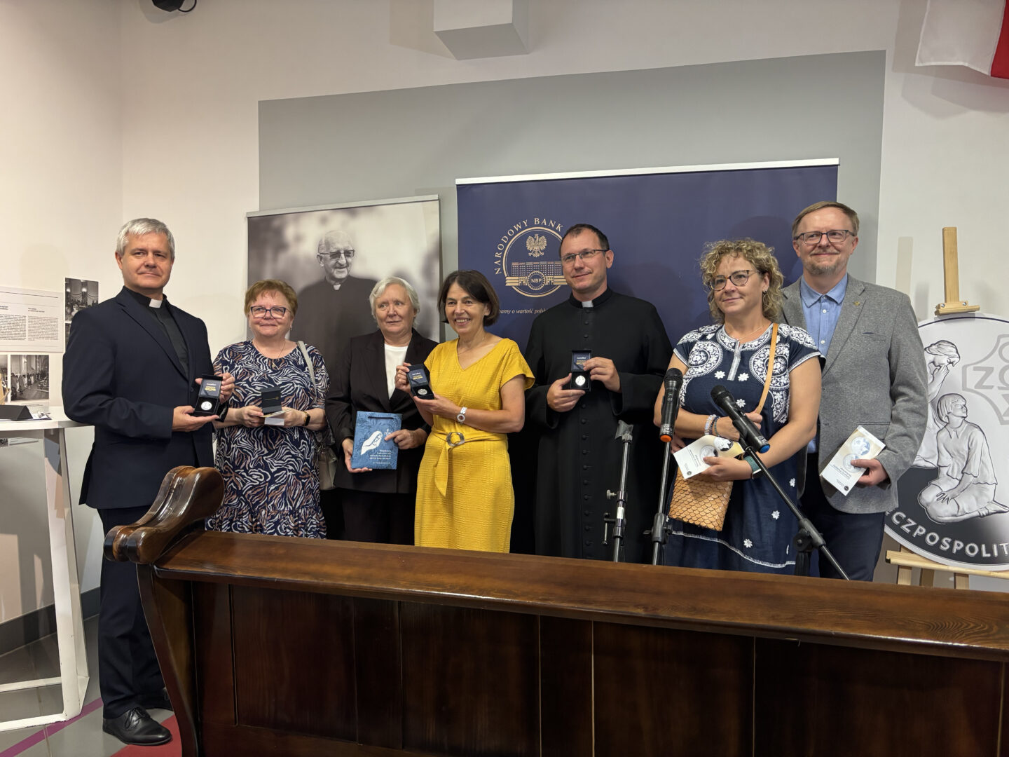 Podczas uroczystości prezentacji kolekcjonerskiej monety uhonorowano nią zasłużonych dla Ruchu Światło-Życie. Na rewersie widnieje postać ks. Franciszka Blachnickiego. Lewa część płaszcza kapłana została przedstawiona jako obozowy pasiak z numerem 1201, nawiązujący do jego pobytu w KL Auschwitz. W tle umieszczono krzyż ze stułą i ciernie. Z kolei na awersie znajdują się: znak Ruchu Światło-Życie oraz wizerunek kobiety i mężczyzny podążających za Ewangelią. Dlaczego NBP zdecydowało się na upamiętnienie na monecie kolejnego duchownego? Wyjaśnia Maria Wawryniewicz, dyrektor oddziału wrocławskiego NBP.