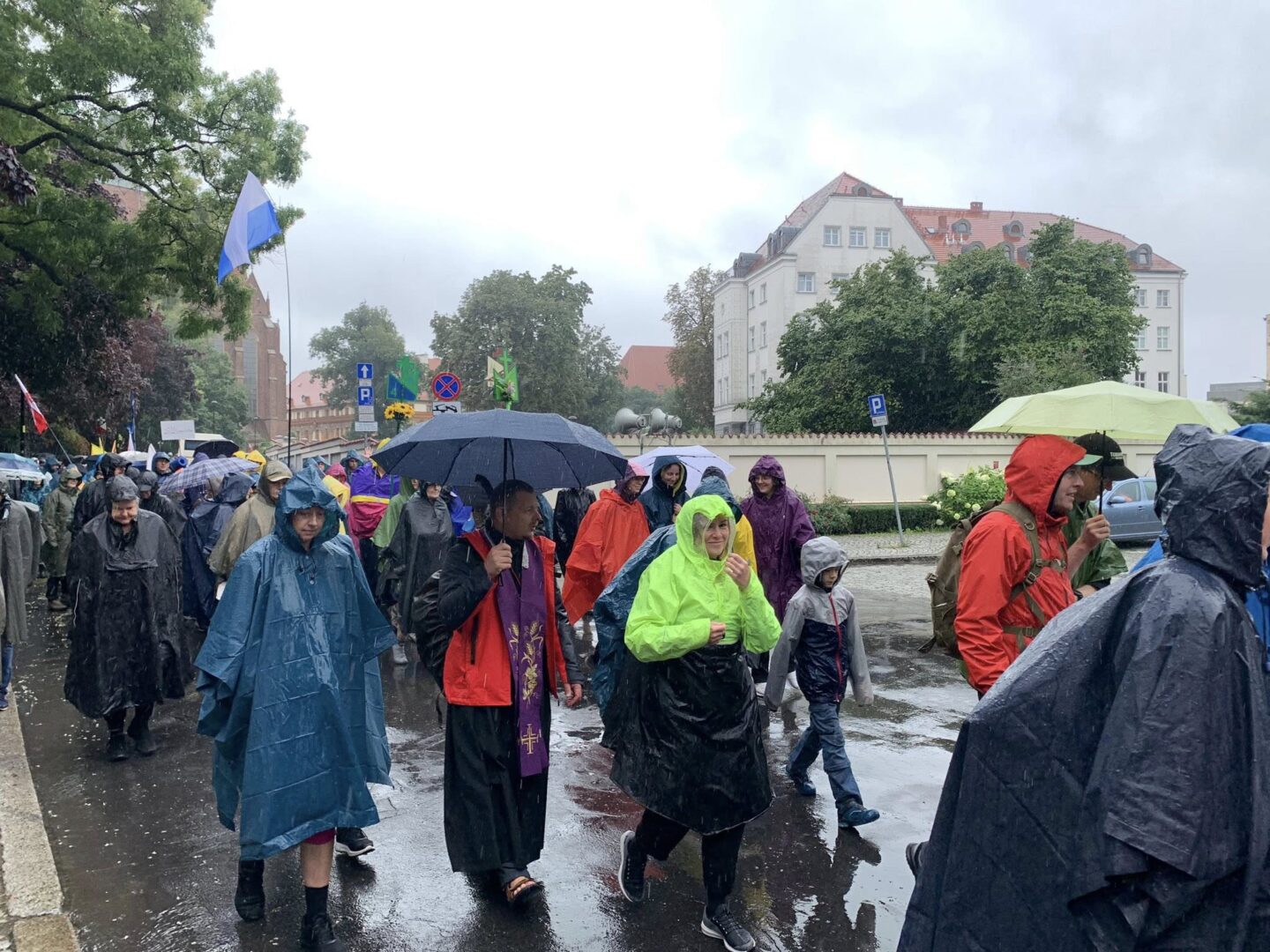 Pierwszy raz od wielu lat pielgrzymi wychodzili z Wrocławia w deszczowej pogodzie. Nawalne opady ustały po ok. 2 godz., natomiast trasa pierwszego dnia z Wrocławia do Trzebnicy musiała zostać nieco zmieniona – ze względu na warunki i błoto na polnych drogach.