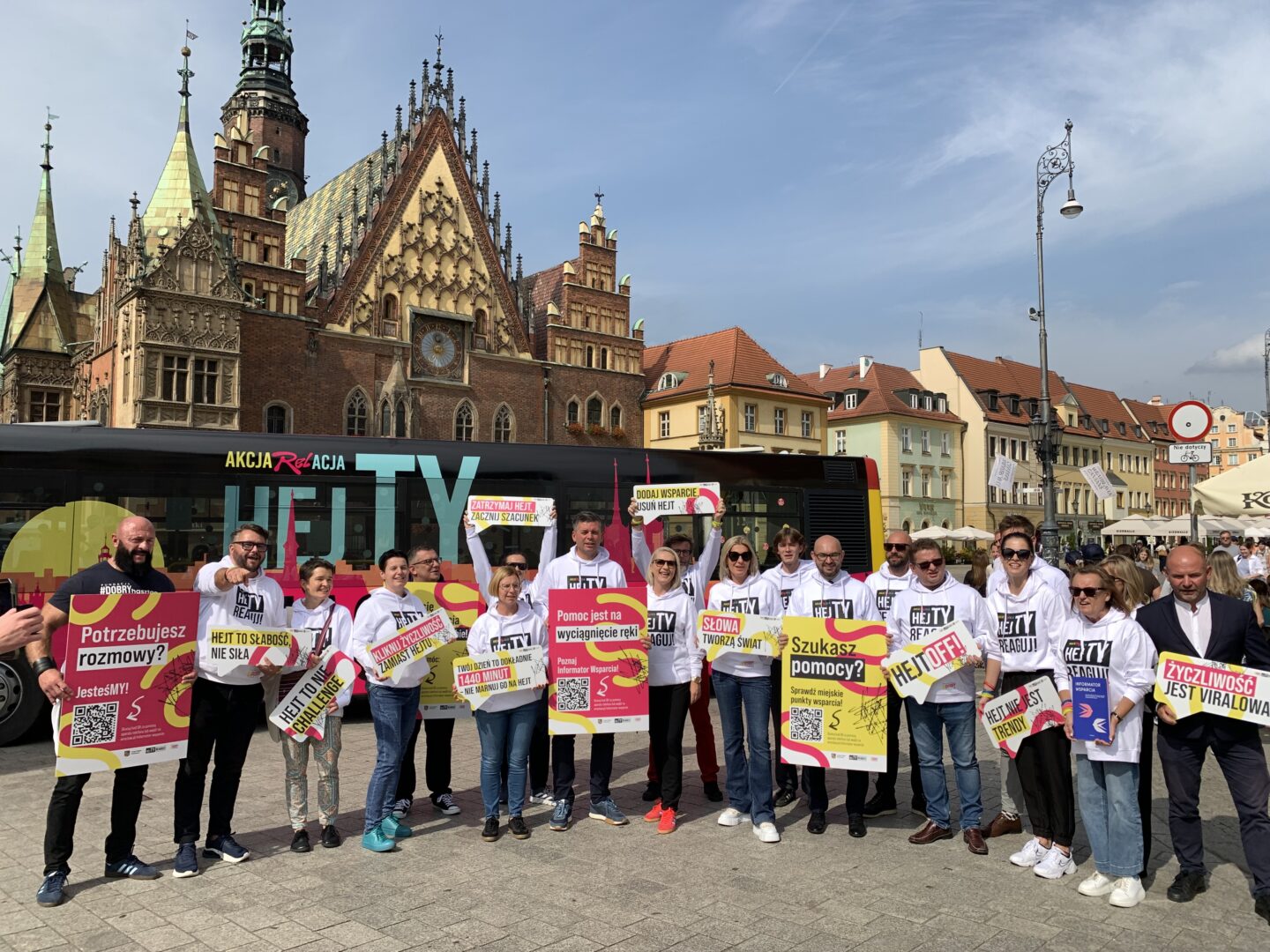 Wrocław dołączył do kampanii „HejTy Reaguj!” organizowanej przez Fundację Dobry Hasztag. Specjalny autobus z materiałami informacyjnymi będzie jeździć od szkoły do szkoły. Miasto przygotowało też Informator Wsparcia, w którym znajdziemy łatwy dostęp do pomocy w sytuacjach kryzysowych.