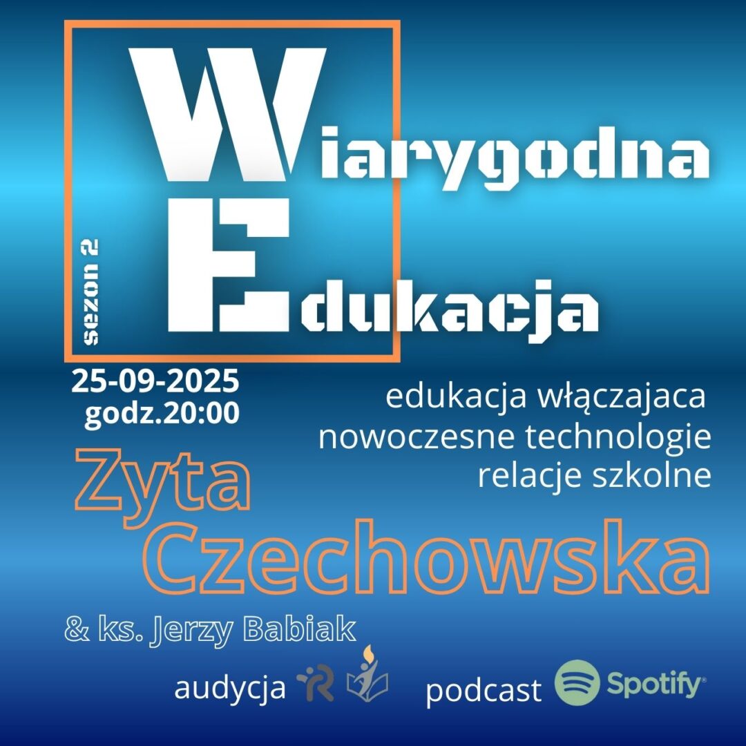 Już jutro w audycji „Wiarygodna Edukacja” ks. Jerzy Babiak podejmie ważny temat z gościem, który od lat inspiruje polskich nauczycieli i rodziców. Jego rozmówczynią będzie Zyta Czechowska – Nauczycielka Roku 2019, Edukatorka Roku 2024, laureatka konkursu „Sukces pisany szminką” oraz dyrektorka Niepublicznego Ośrodka Doskonalenia Nauczycieli.