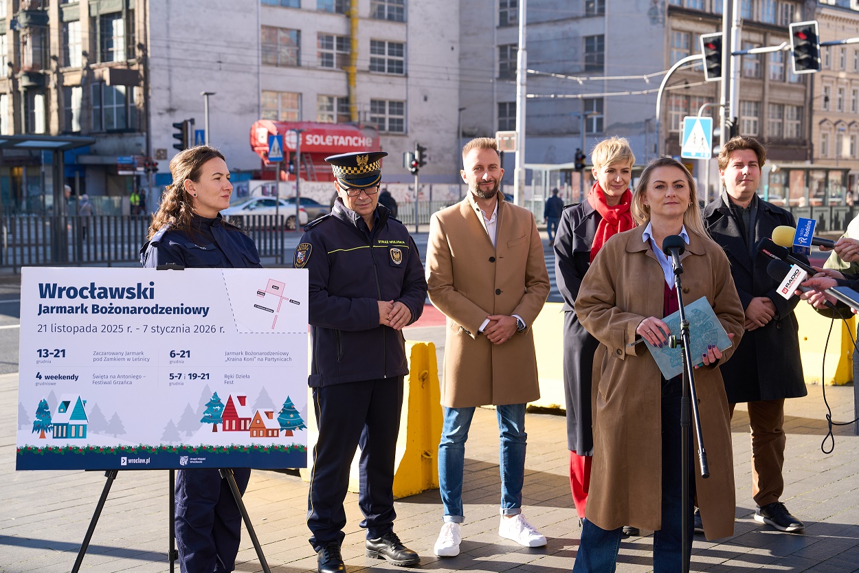 Czas jarmarku jest bardzo przyjemny, ale może generować kłopoty, np. drobne kradzieże kieszonkowe czy zagubienie dzieci. Kluczowe jest zabezpieczenie imprezy, stąd decyzja o betonowych barierach, które mają na celu ochronę przed nieuprawnionym wjazdem samochodów, mówi podk. Aleksandra Freus z Komendy Miejskiej Policji we Wrocławiu.