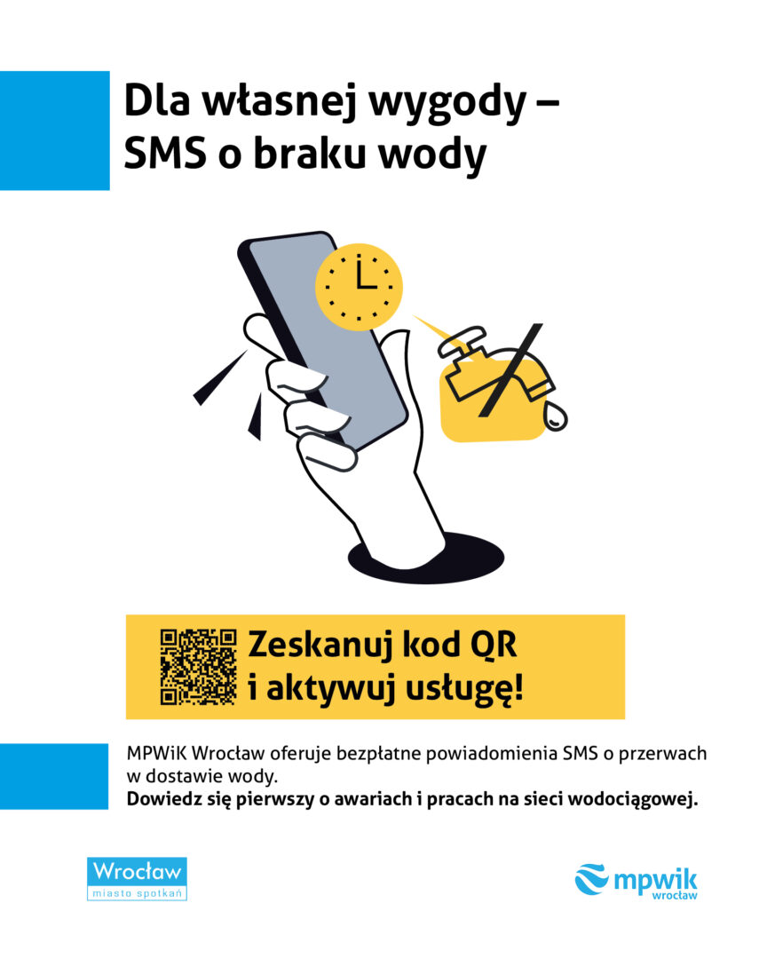 Niespodziewany brak wody potrafi zaskoczyć w środku porannej toalety, podczas gotowania, tuż przed wyjściem z domu. MPWiK Wrocław ma na to jednak sposób – bezpłatne powiadomienia SMS o planowanych i awaryjnych wyłączeniach wody.