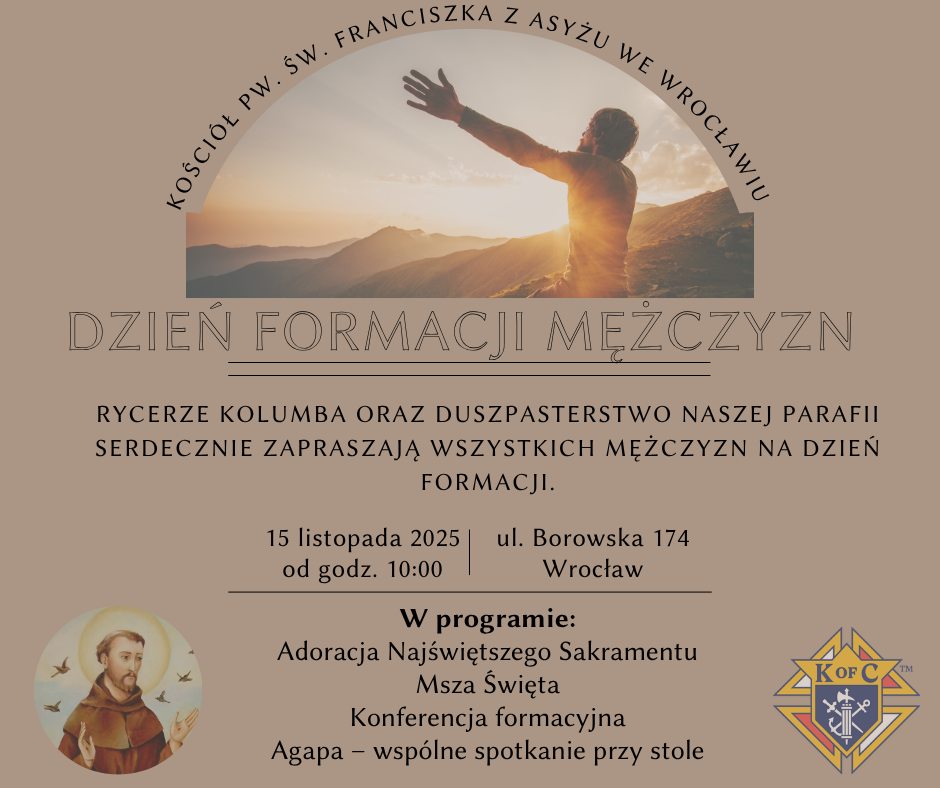 Dzień Formacji Mężczyzn, na który zaprasza Rada 16105, która na co dzień działa przy parafii pw. św. Franciszka z Asyżu we Wrocławiu, odbywa się raz w roku.