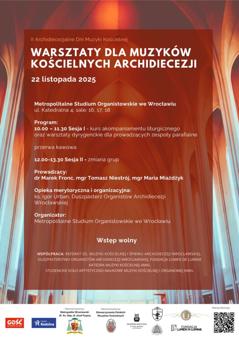 W sobotę, 22 listopada, w Metropolitalnym Studium Organistowskim przy ul. Katedralnej 4 odbędą się warsztaty dla muzyków kościelnych.