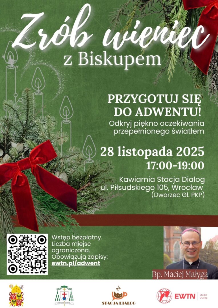 W najbliższy piątek (28 listopada) na Stacji Dialog we Wrocławiu odbędzie się wydarzenie, które ma na celu wprowadzenie uczestników w radosne oczekiwanie na przyjście Pana Jezusa. Uczestnicy wraz z gościem specjalnym będą wspólnie tworzyli wieńce adwentowe. Na spotkanie zaprasza Elżbieta Woźniak z EWTN Polska.