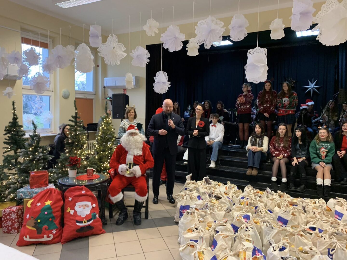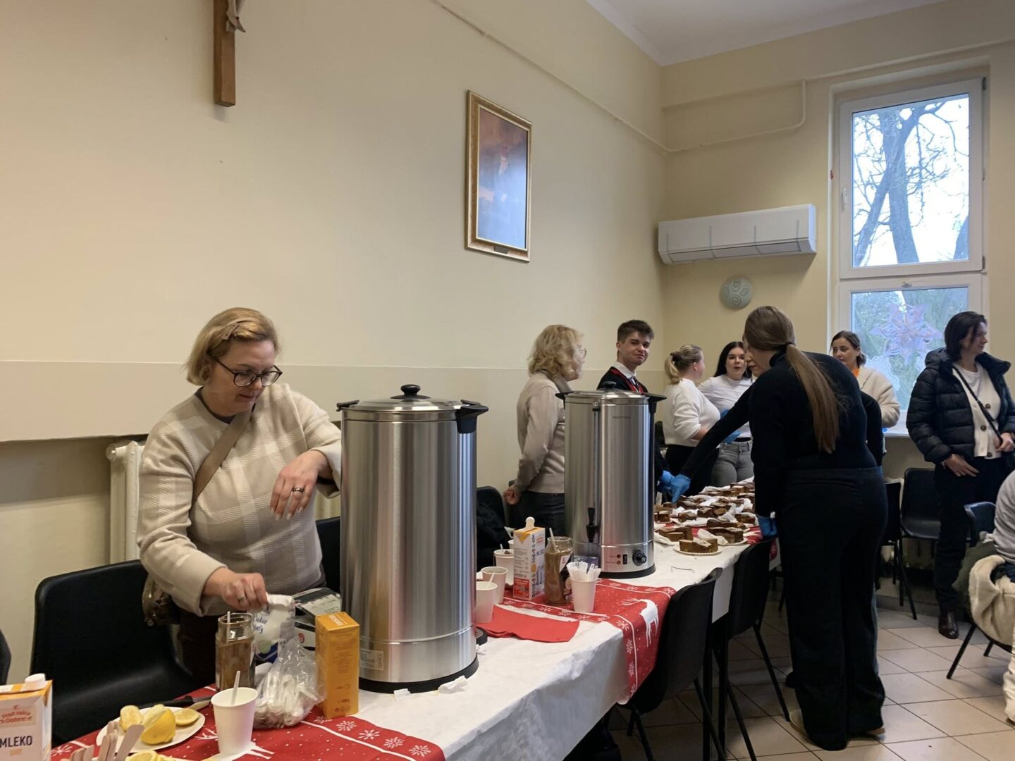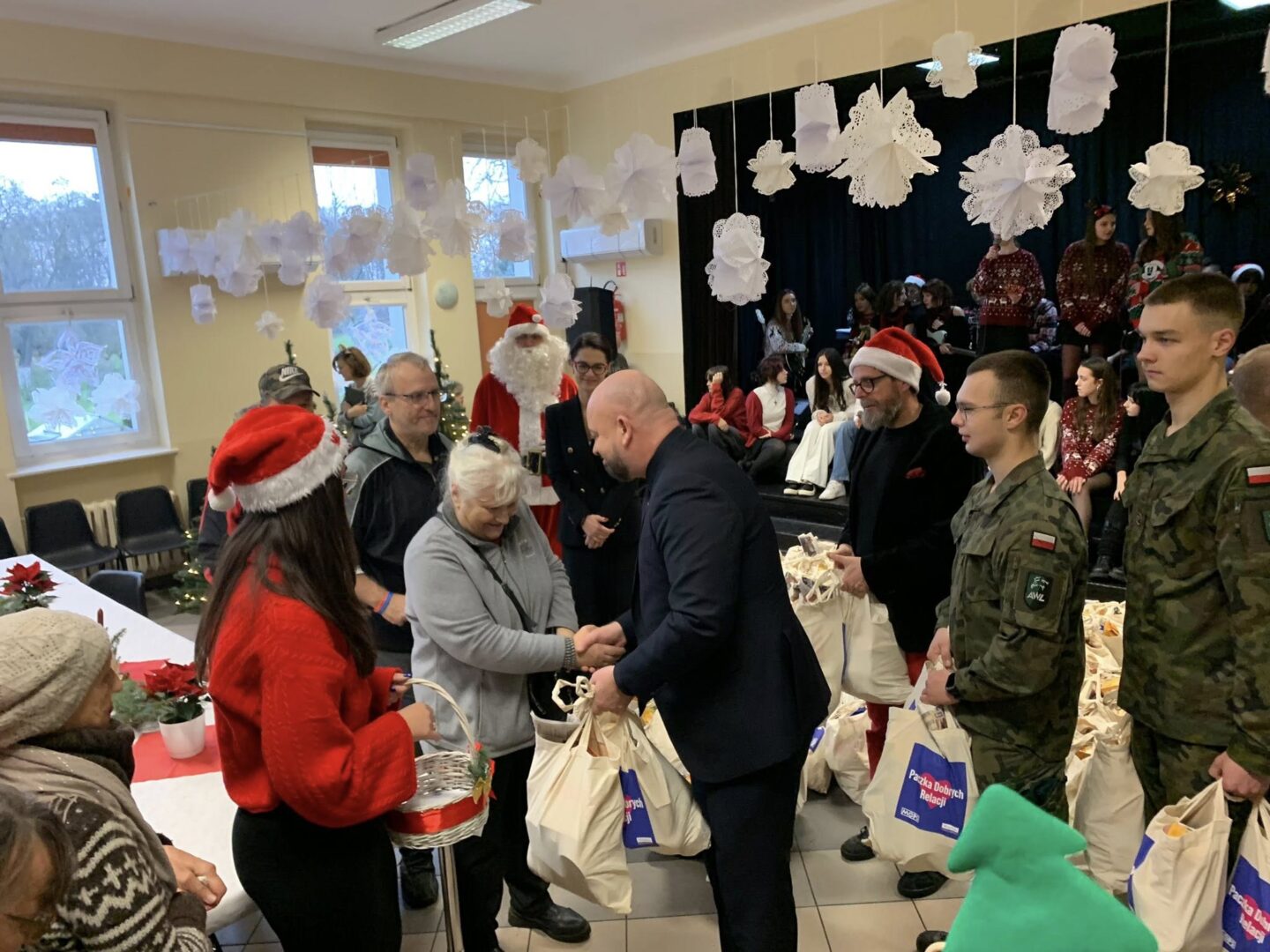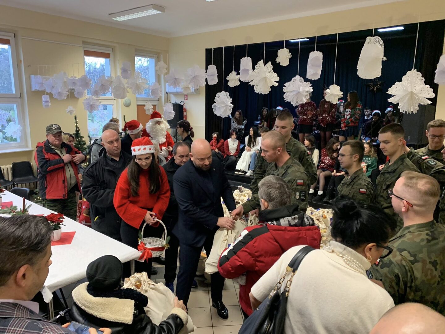Organizatorzy przygotowali poczęstunek, barszcz, domowe ciasta. W rozdawaniu paczek pomagał sam święty Mikołaj (wolontariusz).