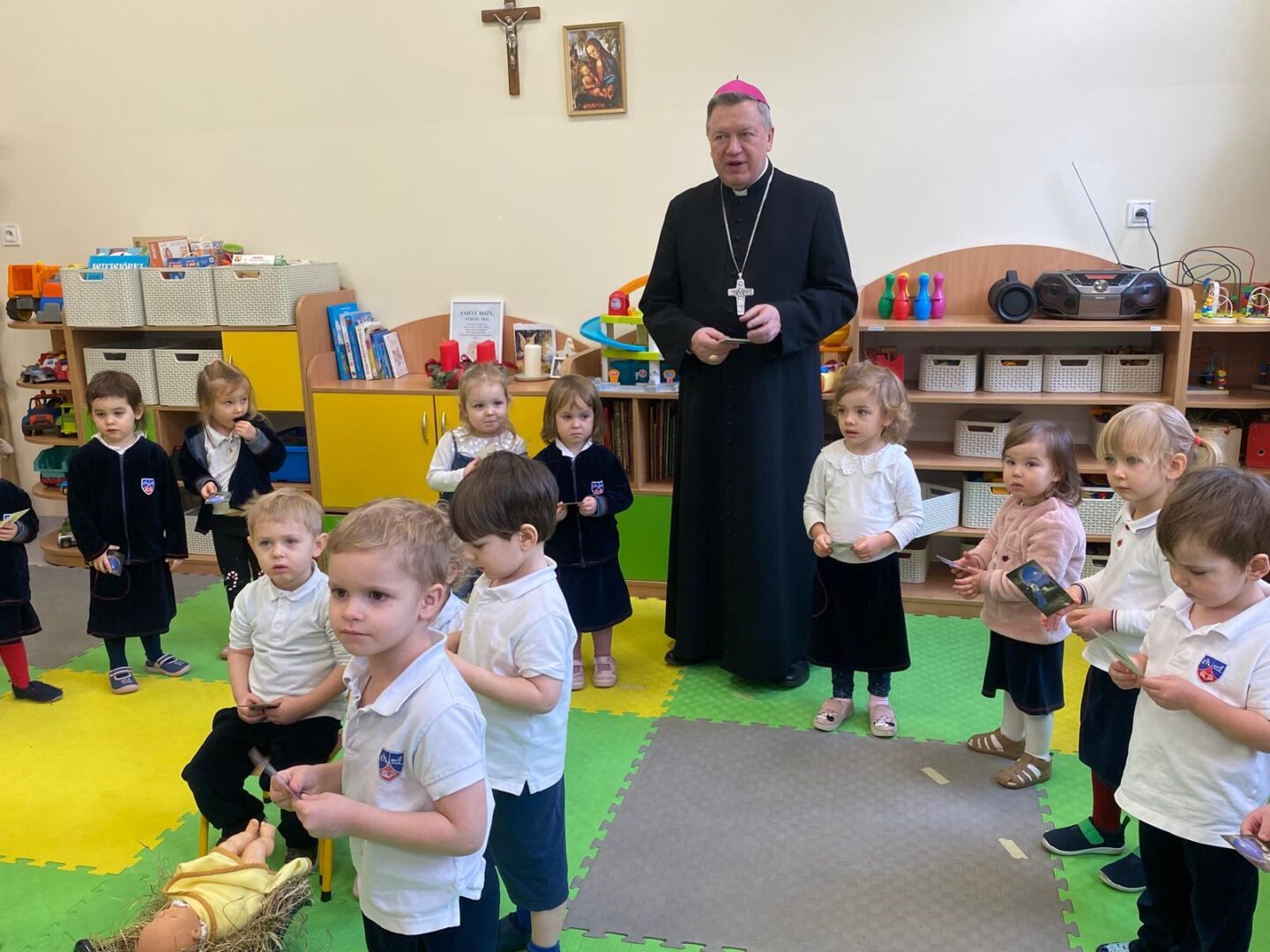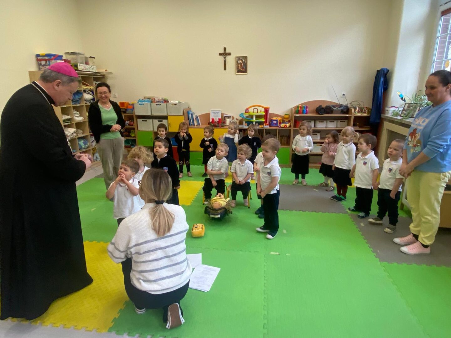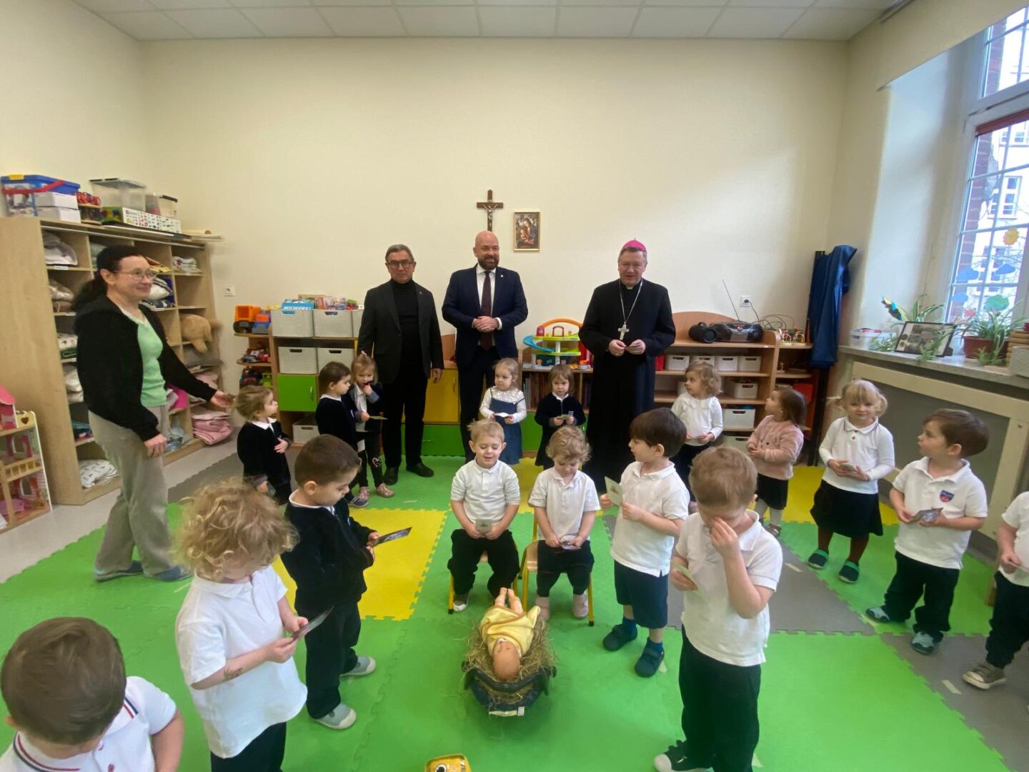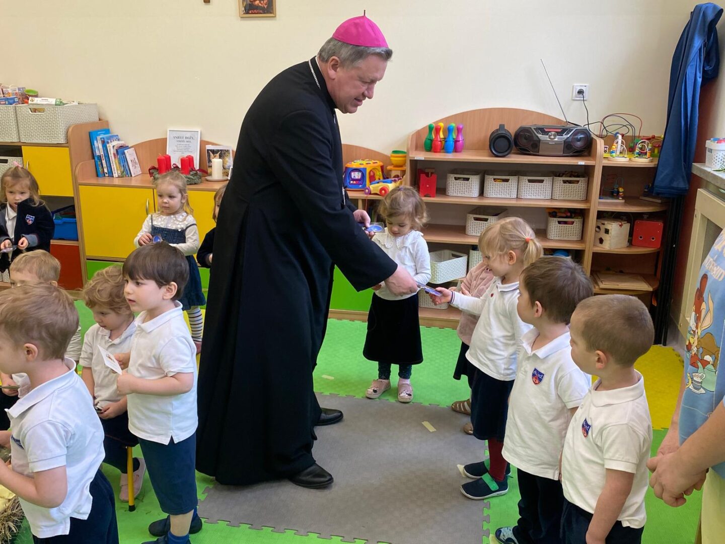 Arcybiskup i prezydent odwiedzili przedszkolaków podczas lekcji plastyki, a uczniów szkoły podstawowej podczas lekcji muzyki. Nie zabrakło wspólnego kolędowania.