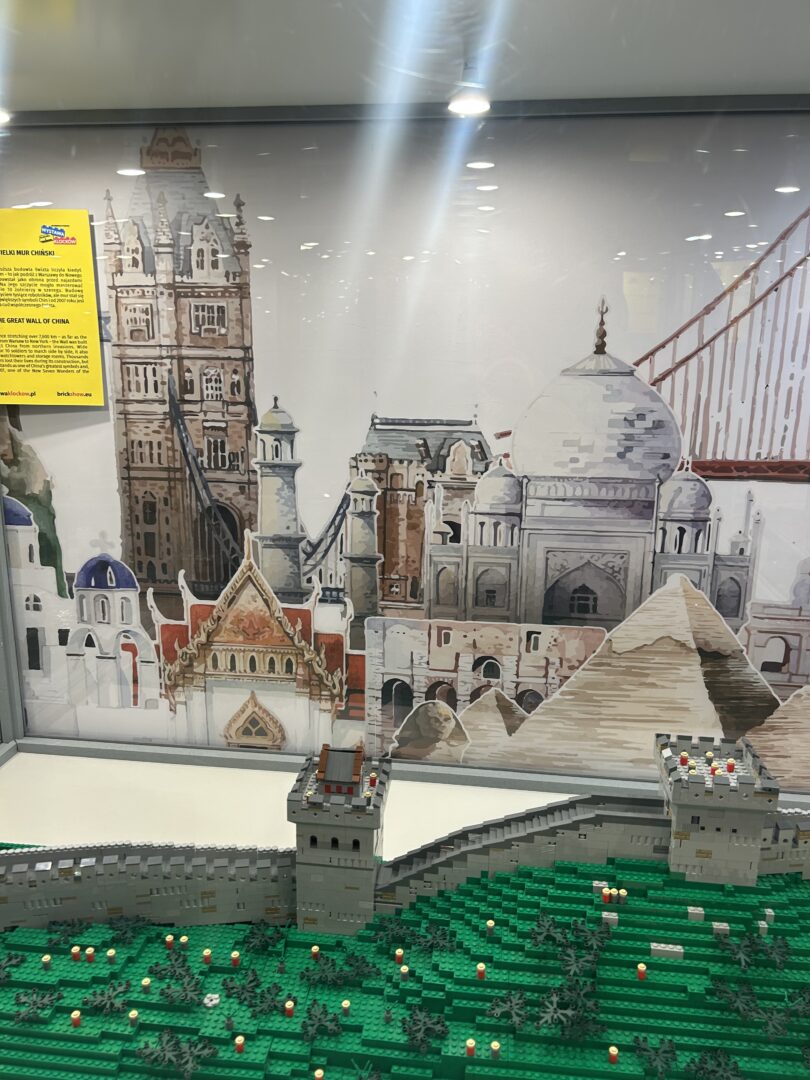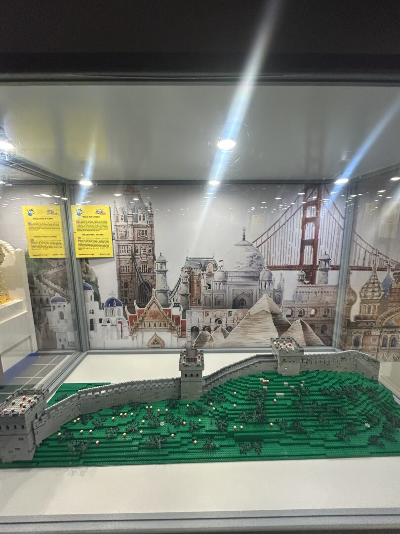 Jedną z głównych atrakcji ekspozycji jest strefa największych budowli świata, prezentująca m.in. znane mosty Golden Gate Bridge i Tower Bridge o długości 3 metrów każdy, Burj Khalifa mające 270 cm wysokości, Statuę Wolności mierzącą ponad 3 metry, Berliner Fernsehturm (320 cm) oraz Willis Tower zbudowaną z ponad 48 tys. klocków. Ekspozycję uzupełniają równieżinne znane budowle takie jak: Turning Torso (ponad 200 cm), Taipei 101 (410 cm) oraz niezwykły Bank of China.