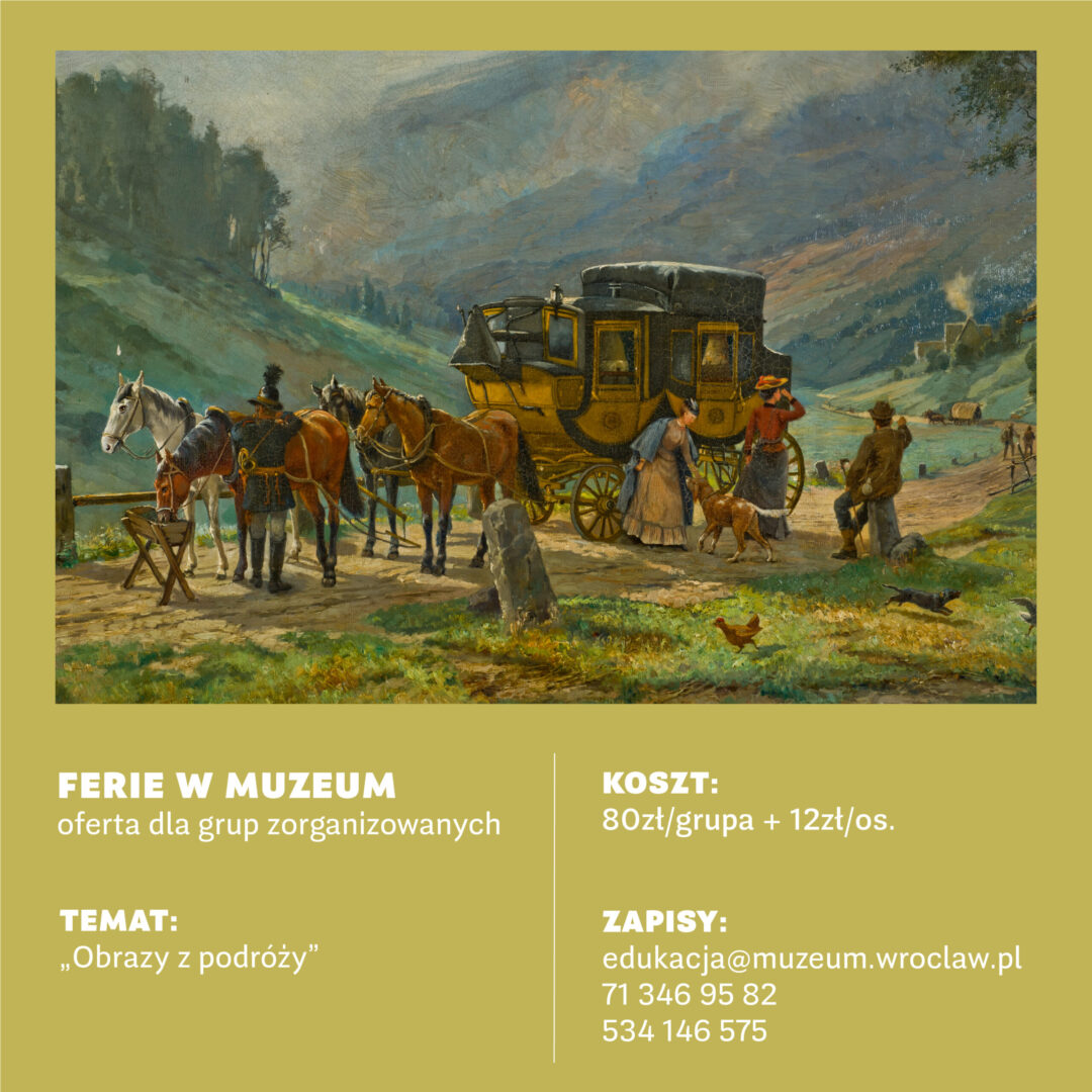 Zajęcia dla grup zorganizowanych, pt. „Obrazy z podróży” – podczas zajęć uczestnicy zapoznają się z tematyką podróżowania na przestrzeni wieków. Zobaczą dawne pojazdy pocztowe, stroje, akcesoria podróżnicze oraz porozmawiają o sposobach podróżowania dawniej i dziś, a w części warsztatowej uczestnicy będą tworzyć obrazy z podróży.