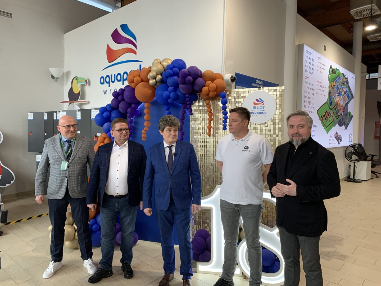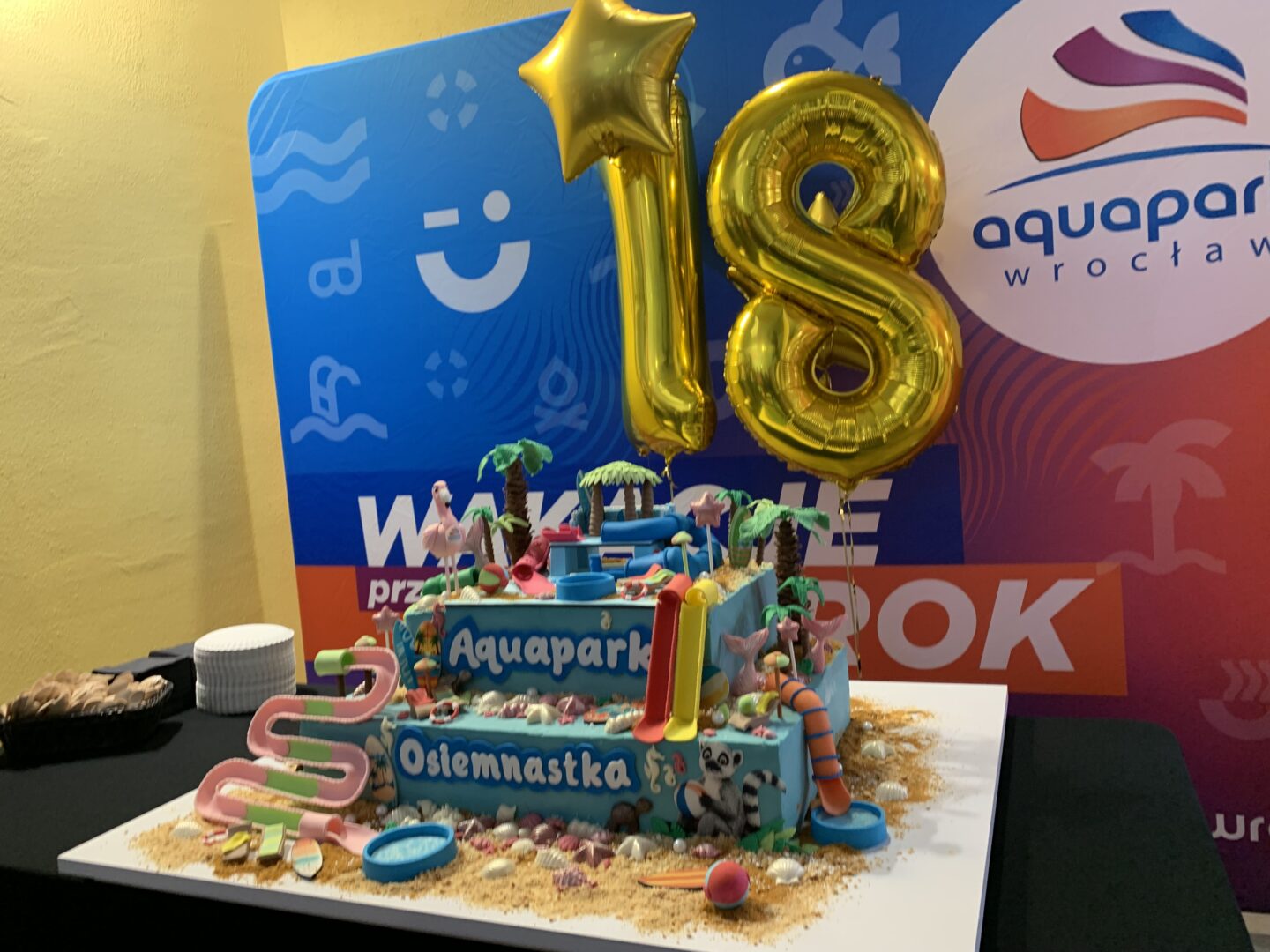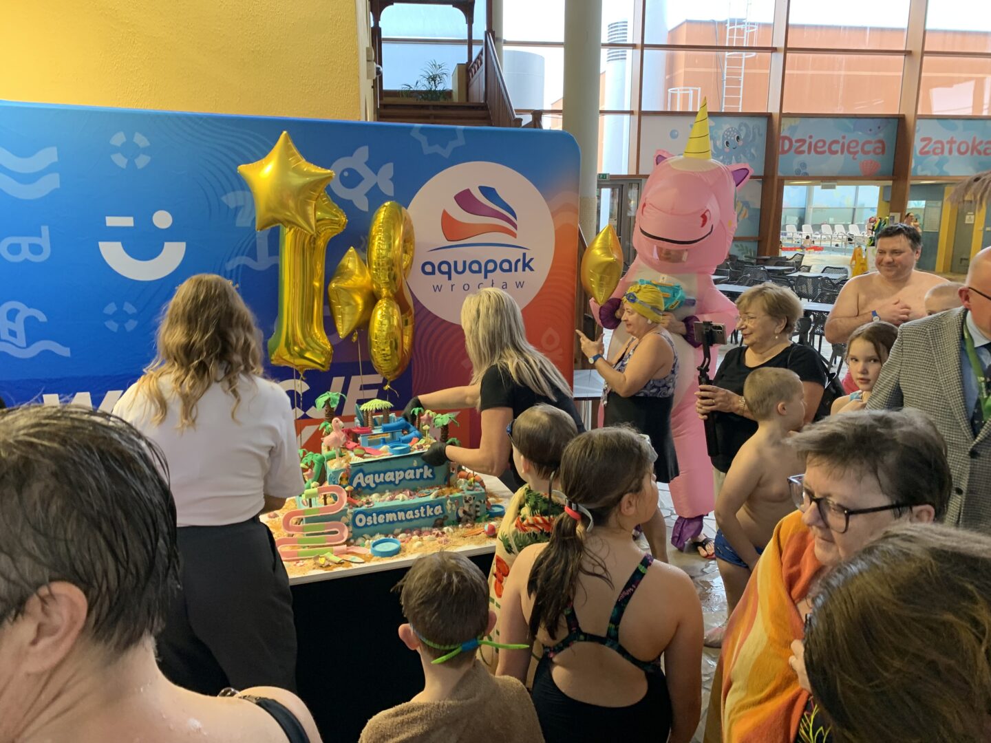 Wrocławski Park Wodny S.A. z okazji 18-stki aquaparku przygotował niespodziankę. Był tort, animacje dla najmłodszych i upominki. Nie zabrakło podsumowań w związku z rozbudową obiektu oraz pytań o zasady bezpieczeństwa.