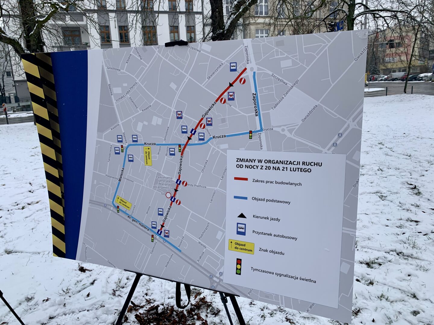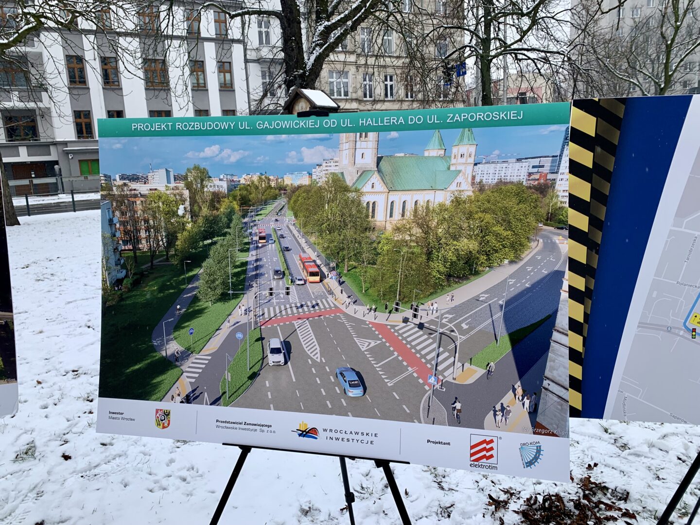 Fot. DD Radio Rodzina / Projekt rozbudowy ul. Gajowickiej oraz plansza pokazująca zmiany w organizacji ruchu od 21.02.2026 r.
