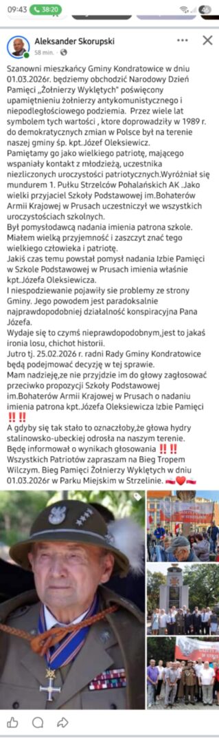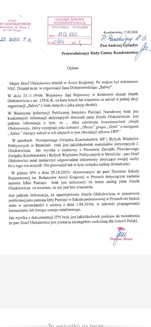 -Jestem poruszony i rozczarowany decyzją radnych (…) Mam nadzieję, że temat powróci i Izba Pamięci w Prusach otrzyma imię majora.