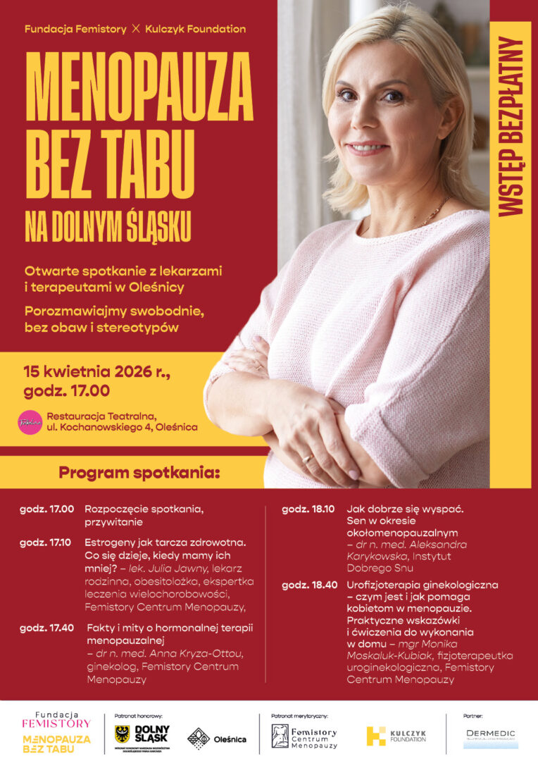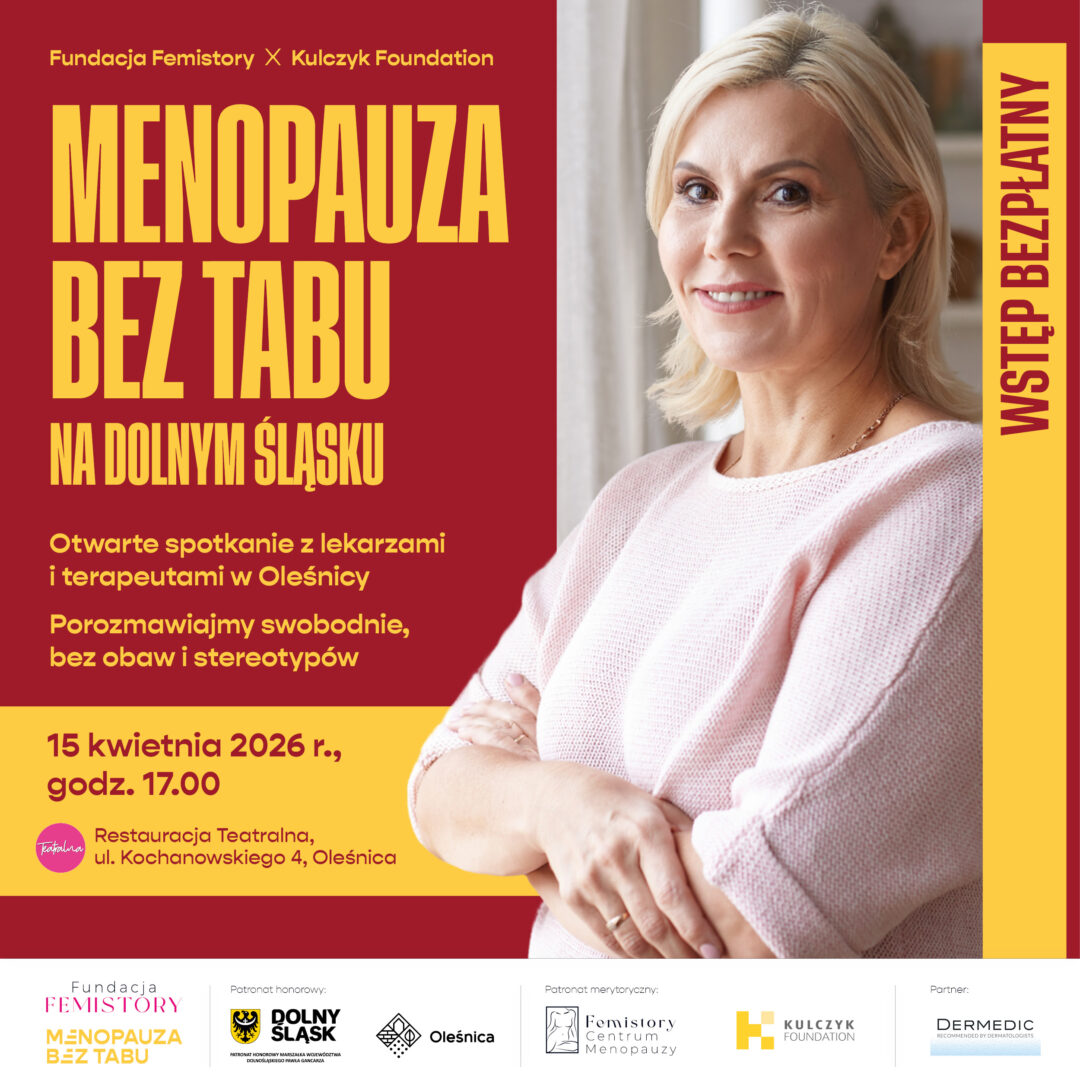 Spotkanie organizuje Fundacja Femistory w ramach projektu Kulczyk Foundation – Menopauza bez tabu – ogólnopolskiego projektu, który normalizuje menopauzę i edukuje w jej zakresie.