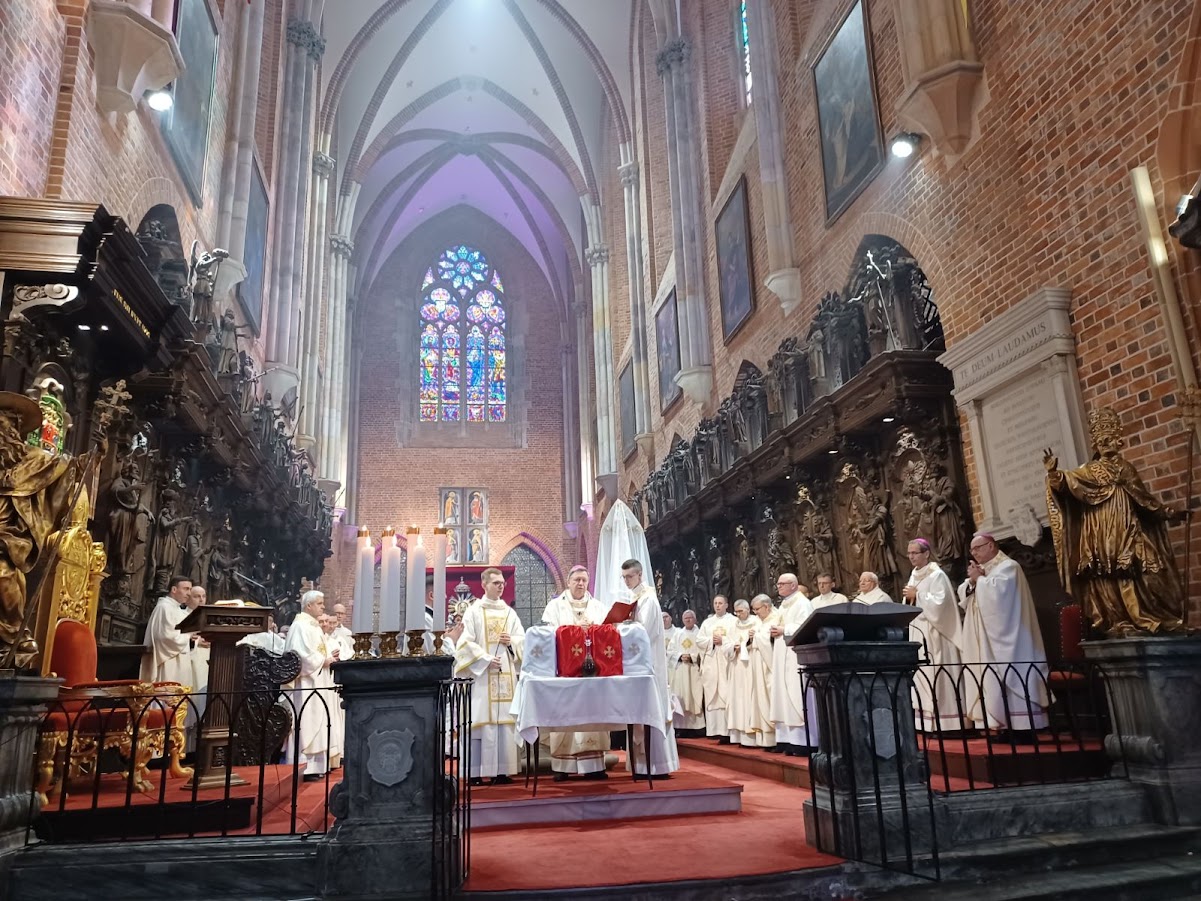 Hierarcha w homilii zwrócił uwagę na to, że w Eucharystii kościół objawia się w całej swojej sakramentalnej pełni. Biskup otoczony prezbiterami, diakonami, ludem bożym. To piękny i wymowny znak tajemnicy Chrystusa, który pozostaje obecny i działa w swoim kościele, zaznaczył metropolita wrocławski.