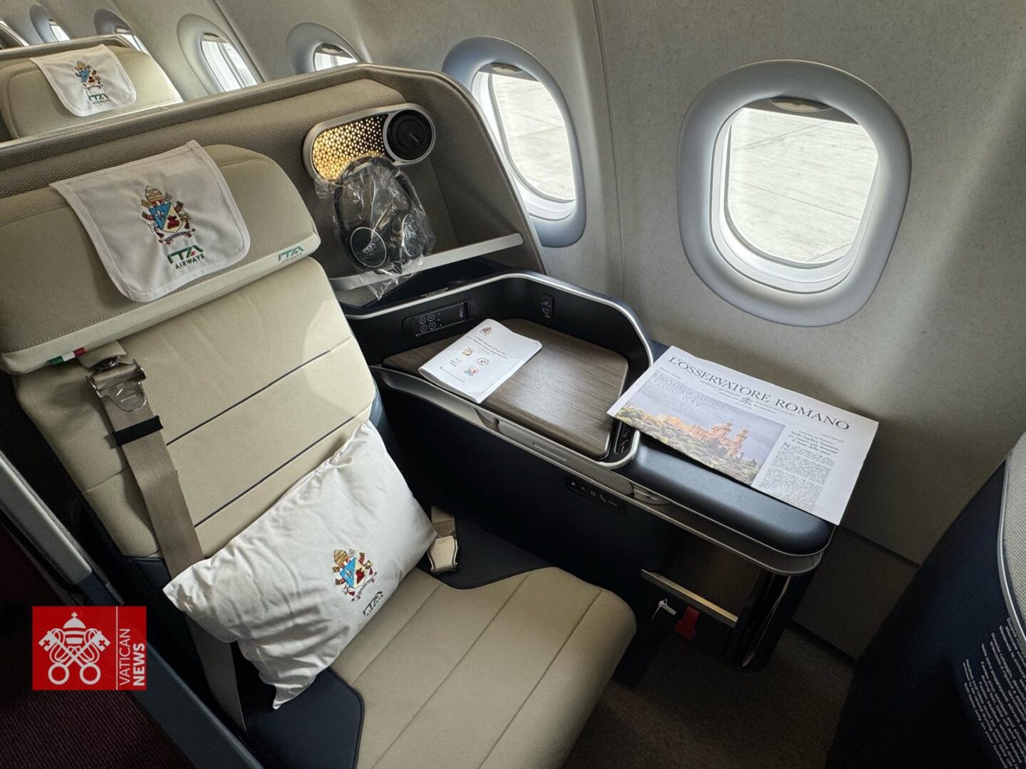 Fot. Vatican Media – Miejsce Ojca Świętego w samolocie