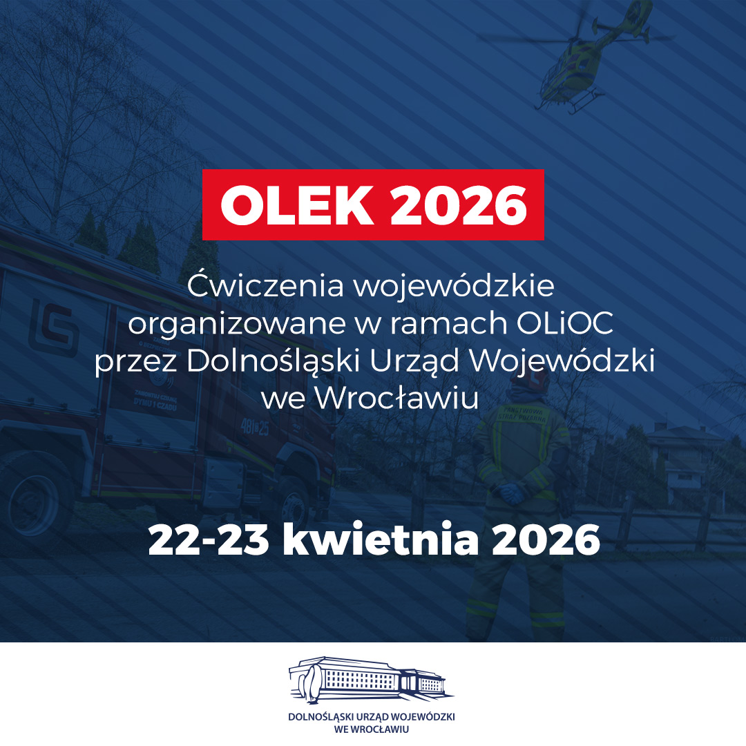 W dniach 22–23 kwietnia na Dolnym Śląsku odbędą się największe od lat ćwiczenia służb ratunkowych i instytucji odpowiedzialnych za bezpieczeństwo – „OLEK 2026” (ochrona ludności, ewakuacja i kryzys). W pięciu lokalizacjach w regionie przećwiczonych zostanie 13 scenariuszy kryzysowych, obejmujących m.in. działania ratownicze, chemiczne, wodne i poszukiwawcze. Władze i organizatorzy apelują do mieszkańców o spokój, nieutrudnianie działań służb oraz stosowanie się do komunikatów, ponieważ na ulicach pojawi się wzmożony ruch pojazdów uprzywilejowanych.