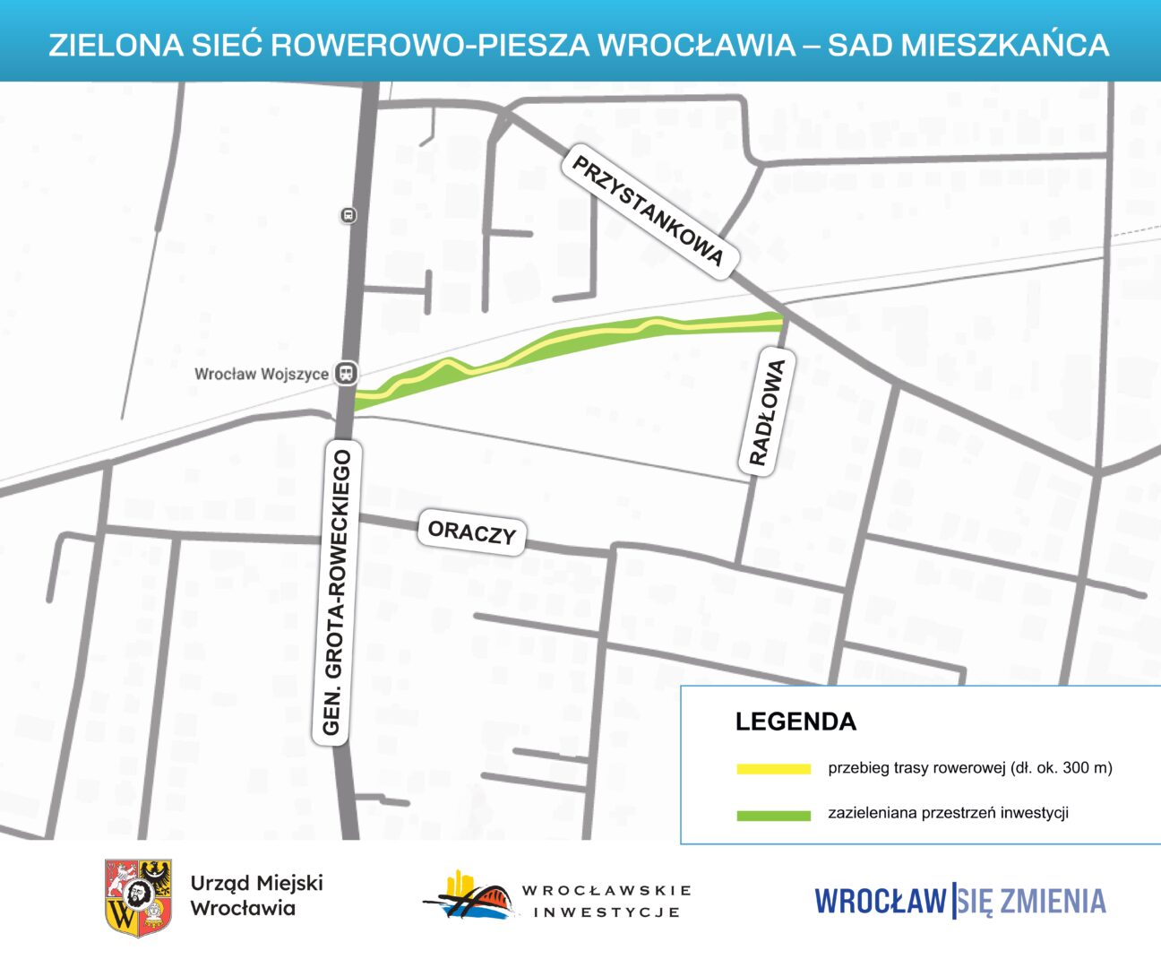 Nowy punkt na mapie Wrocławia powstanie na 300-metrowym odcinku pasa zieleni między linią kolejową nr 285 a R.O.D. „X-Muza” (trasa od ul. Grota-Roweckiego do ul. Radłowej). Zamiast dzikich zarośli powstanie tam porządna, oświetlona trasa spacerowa.