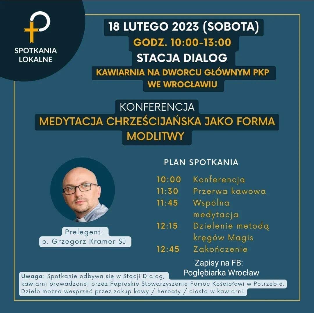 Wspólnota „Pogłębiarka” zaprasza do udziału w warsztacie o medytacji chrześcijańskiej w sobotę 18 lutego w Stacji Dialog na Dworcu PKP we Wrocławiu. Prelekcję wygłosi jezuita, o. Grzegorz Kramer SJ.