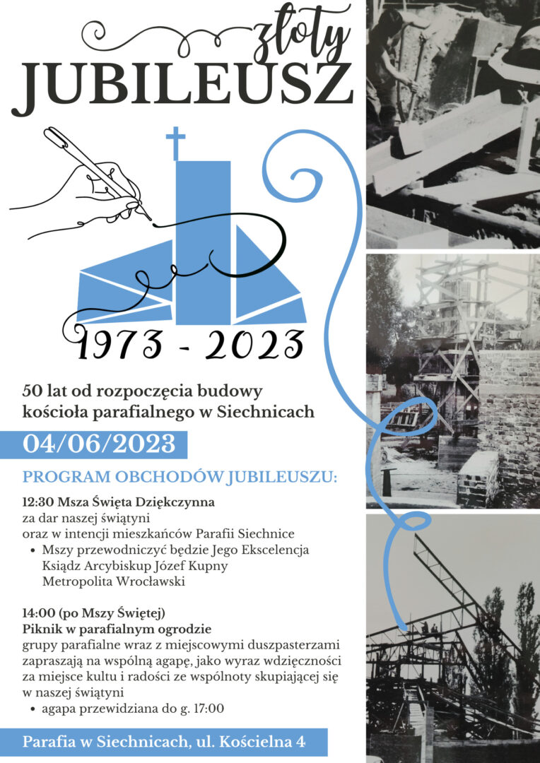 Kościół w Siechnicach obchodzi złoty jubileusz. Dokładnie w 1973 roku rozpoczęła się budowa kościoła w parafii pw. Niepokalanego Serca Najświętszej Maryi Panny przy ul. Kościelnej. W pracach uczestniczyły rodziny, które przyjechały po wojnie do Siechnic z terenów Lwowa i Tarnopola. Wśród nich rodzina pana Grzegorza Romana.